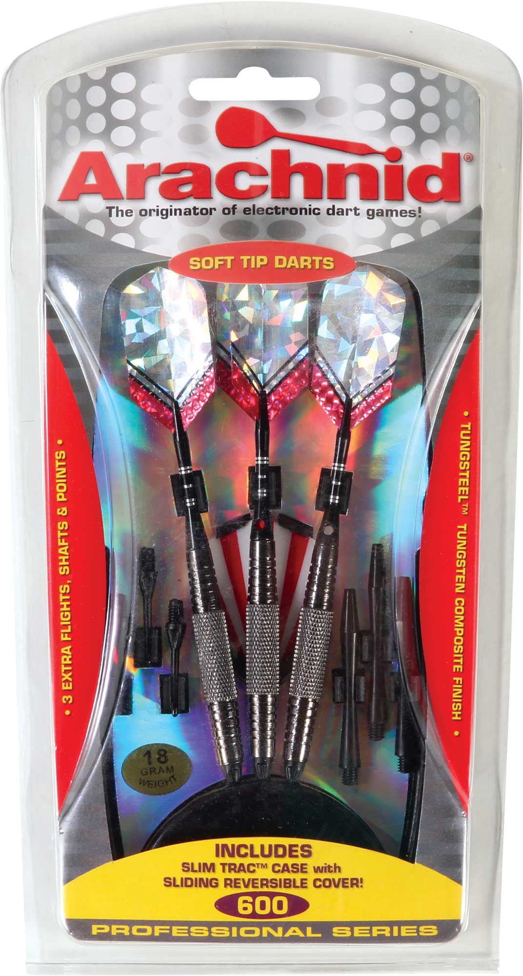Throw a bullseye with precision with the Arachnid SFP600 Soft Dart Set. Featuring 3/16” tips and tungsteel plating, the darts are durable and allow you to achieve accuracy. This set includes spare flights, shafts, and points, so you can replace parts if needed. Includes SlimTrac storage case.