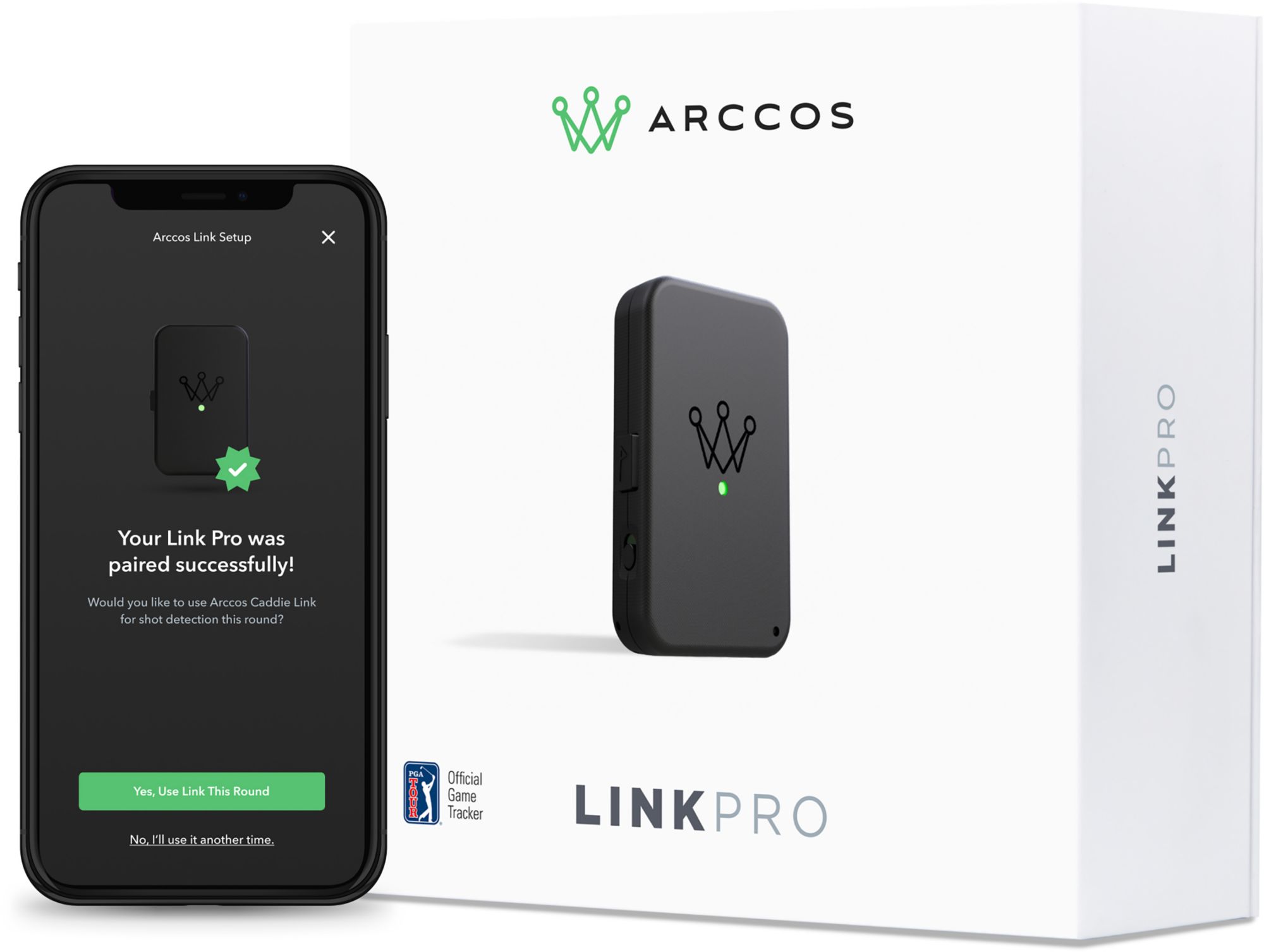 New Link Pro is next generation tech that allows Arccos members to automatically track shots right from their pocket, without a phone. Completely redesigned with new microphones, enhanced GPS and now comes with a wireless charging case. Arccos Link Pro, play the game your way.