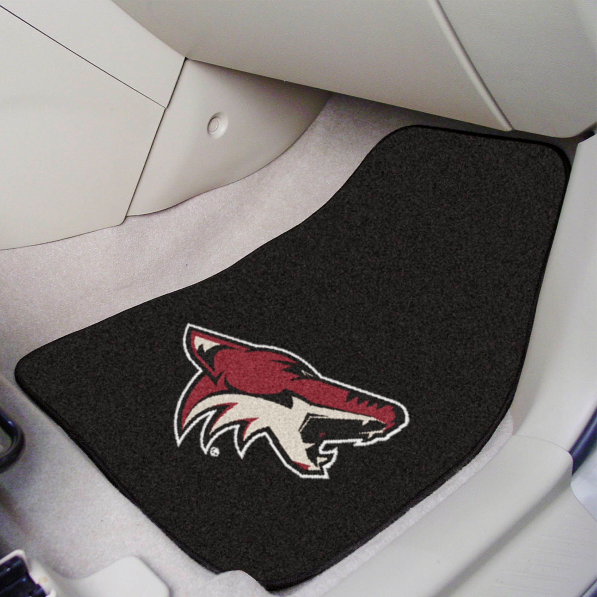 Be the ultimate hockey fan with FANMATS® Arizona Coyotes Two Piece Printed Carpet Car Mat Set. These high quality mats are made of nylon with non-skid vinyl backing and feature your favorite team's logo. Due to its versatile design, this mat set can be used as automotive floor mats for cars, trucks, and SUVs.