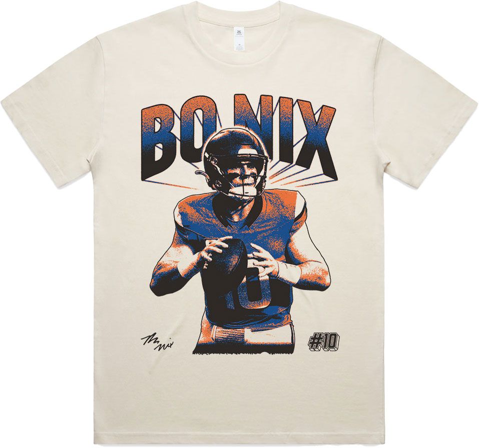 Athlete Studio Men's Denver Broncos Bo Nix Beige Portrait Short Sleeve T-Shirt