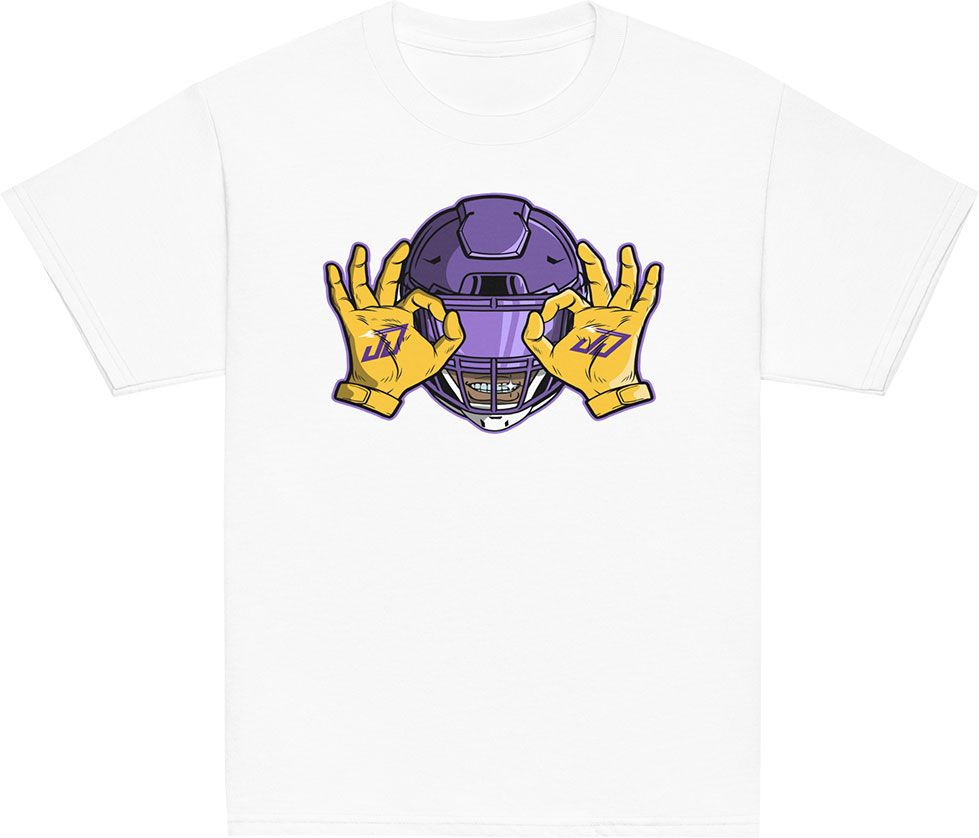 Athlete Studio Youth Minnesota Vikings White Griddy Short Sleeve T-Shirt