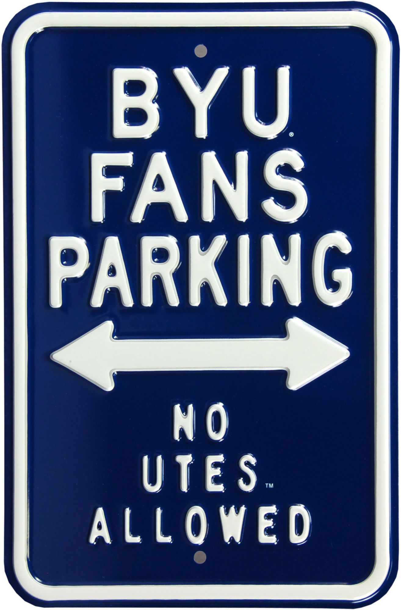 Claim a space to show your fandom with the Authentic Street Signs® BYU Cougars Parking Sign.