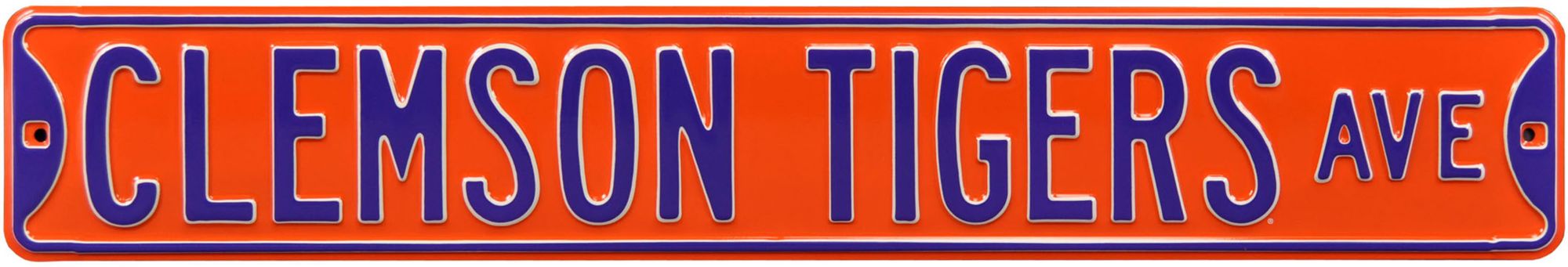 Show your team pride with the Authentic Street Signs® Clemson Tigers Avenue Sign. Two pre-drilled holes allow you to hang this antique style sign wherever you want to show off your school pride. A high quality metal and automotive paint make this sign resistant to weathering, allowing your team colors to shine for many years to come. Complete your Tigers collection with an antique street sign.