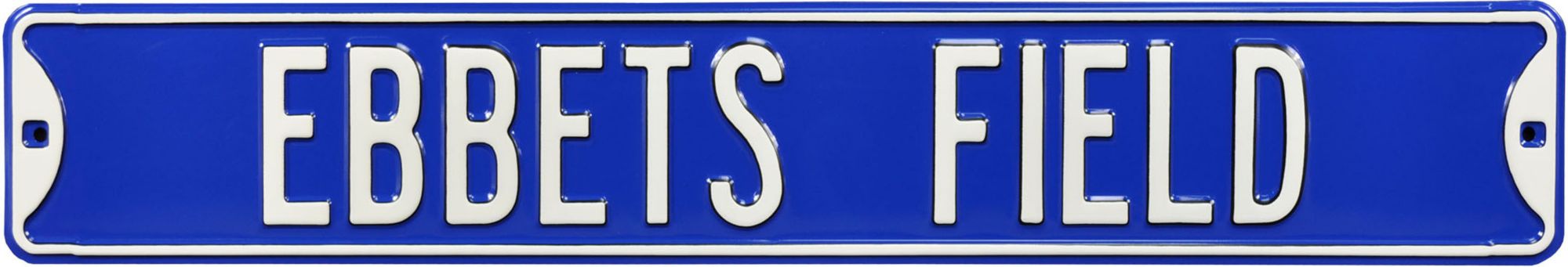 Take the ballpark home with you with the Authentic Street Signs® Ebbets Field Street Sign. Ebbets Field lettering and official Dodgers colors designate you as a true fan. A high quality steel and automotive paint reduce wear and weathering. With pre-set holes on each side, this sign is great for decorating your desk or marking your house as a true Dodgers fan. Show off your Brooklyn Dodgers pride with the Ebbets Field street sign.