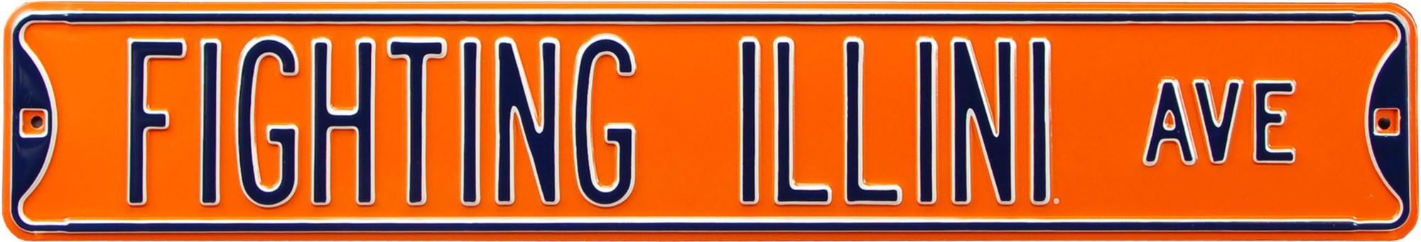 Take your school pride to the next level with an Authentic Street Signs® Illinois Fighting Illini Avenue Sign. Official school colors are brightly displayed with an automotive paint finish and deeply embossed letters. Two pre-drilled holes allow this antique style sign to hang wherever you want to show off your team pride. At 36” by 6”, this sign is great for the home or office. Complete your Illini collection with an antique street sign.