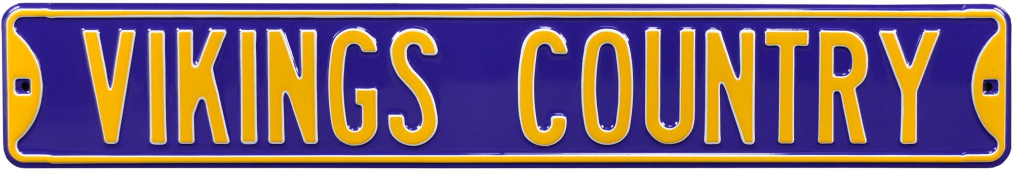 Mark your territory with the Authentic Street Signs® Minnesota Vikings “Vikings Country” Street Sign. Embossed lettering makes your team colors stand out. High quality steel and automotive paint make this sign resistant to wear and weathering. Two pre-drilled holes allow you to hang your Vikings pride anywhere you see fit. This antique style sign is perfect for the home or office. Proudly display your team support with an antique style sign.