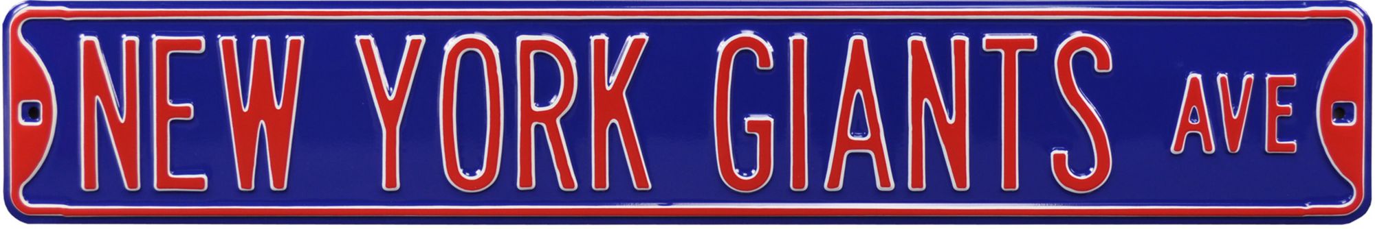 Relive gridiron glory with the blue Authentic Street Signs® New York Giants Avenue Sign. Deeply embossed lettering proudly displays your passion for your favorite team. An antique style and official team colors show a long history of team pride. With two pre-drilled holes on each side, you’re free to hang this sign wherever you want to show off your love of the Giants. No fan shrine is complete without an authentic antique street sign.