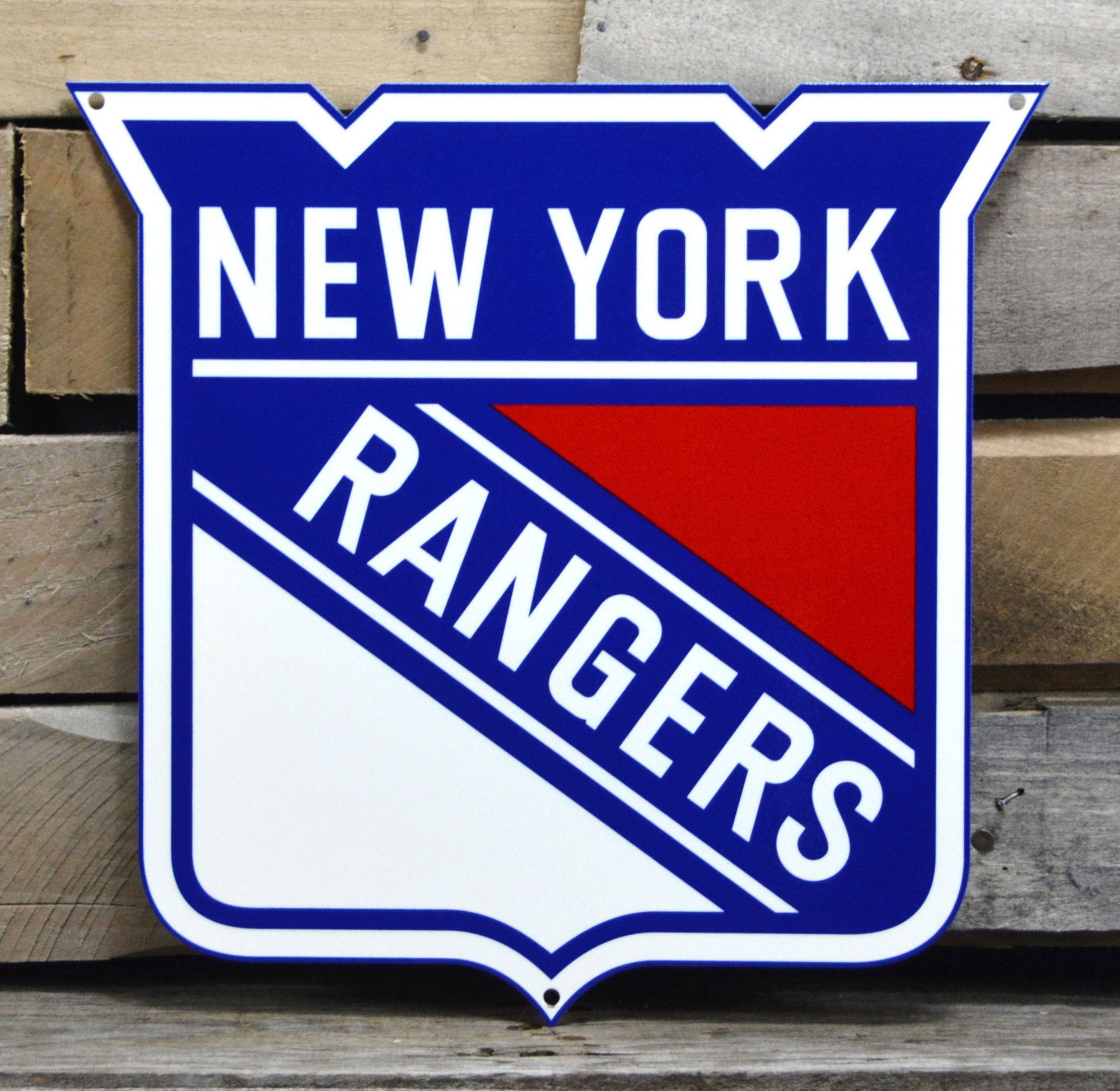 Show your fandom for your favorite team in your fan cave or outdoors with the Authentic Street Signs® New York Rangers Steel Logo Sign.