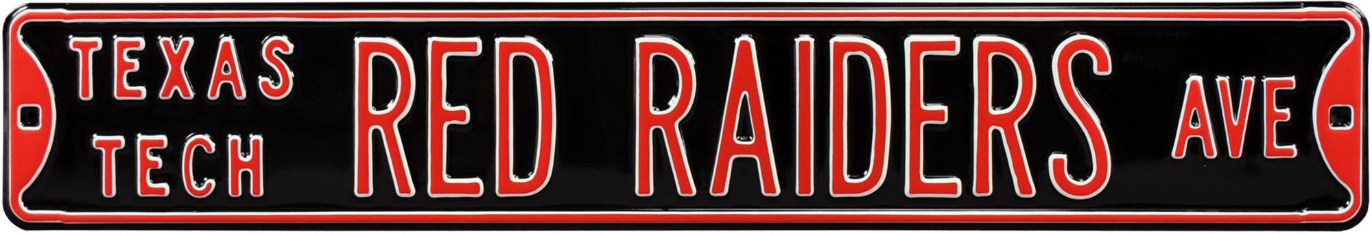 Show your team pride with the black Authentic Street Signs® Texas Tech Red Raiders Avenue Sign. Two pre-drilled holes allow you to hang this antique style sign wherever you want to show off your school pride. A high quality metal and automotive paint make this sign resistant to weathering, allowing your team colors to shine for many years to come. Complete your Red Raiders collection with an antique street sign.