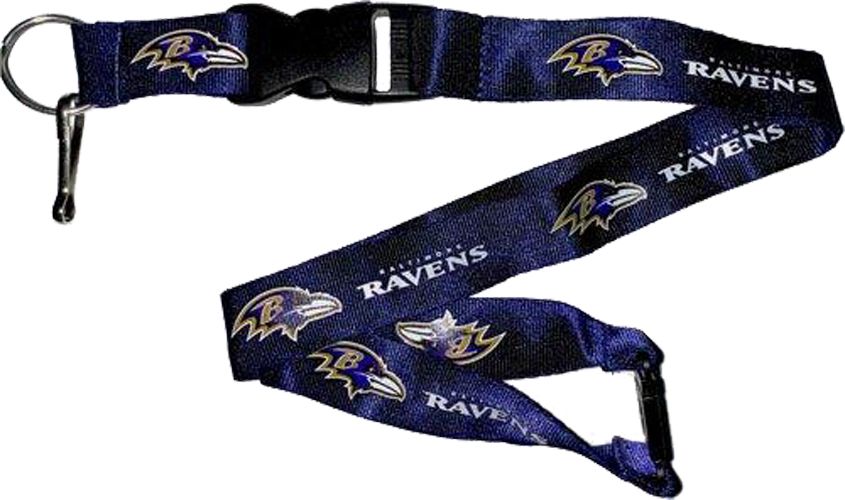Show your support for the team year-round with the Aminco Baltimore Ravens lanyard. This lanyard features the Ravens name and logo on both sides, with a key ring and clip allow easy use. A breakaway tab on the opposite end provides simple removal, and a detachable buckle allows you to quickly release your keys for added convenience.