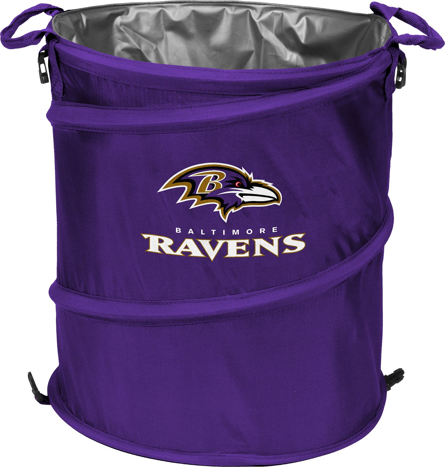 Stay organized when watching the game at home or enjoying the matchup at the next tailgate party with the Logo® Baltimore Ravens Trash Can Cooler.