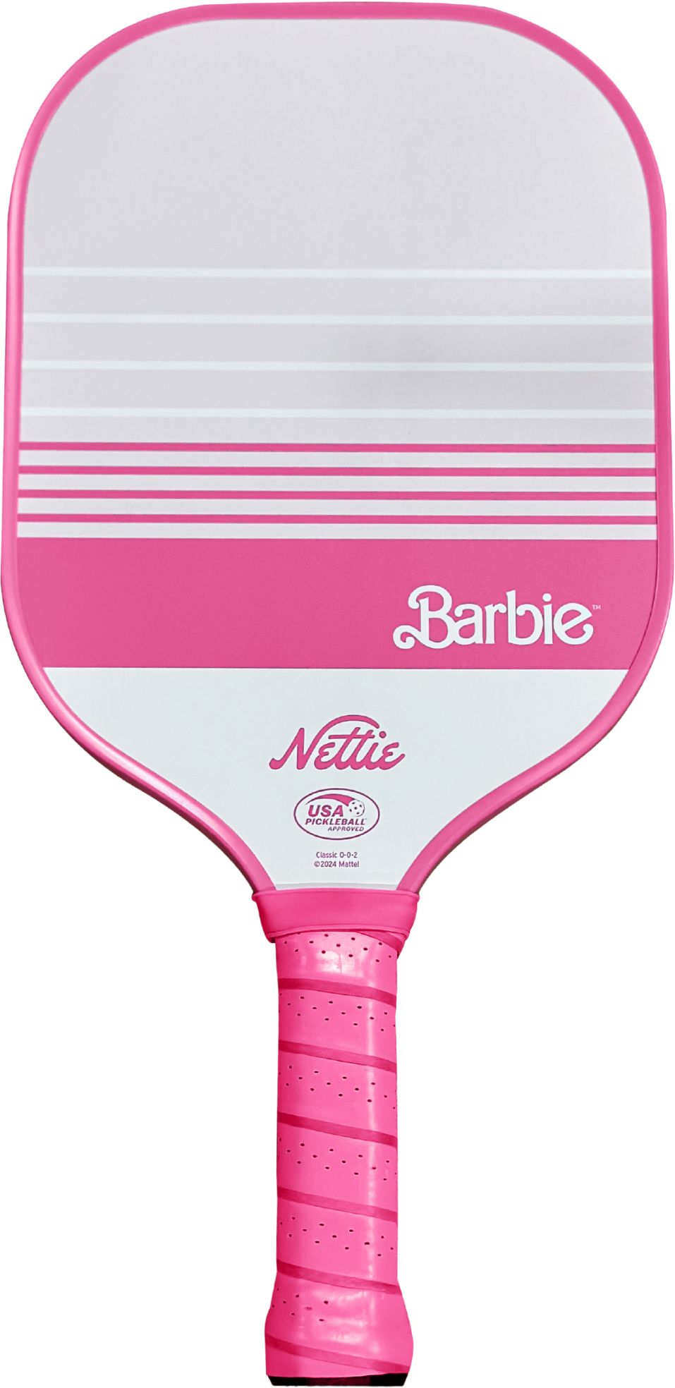 Introducing the exclusive limited-edition Barbie™ x Nettie Pickleball Paddle. USA Pickleball Approved paddle with carbon fiber face, honeycomb interior, and perfect balance of power and control. Nettie is woman-owned and operated with a mission to bring more joy and color into the world through pickleball.