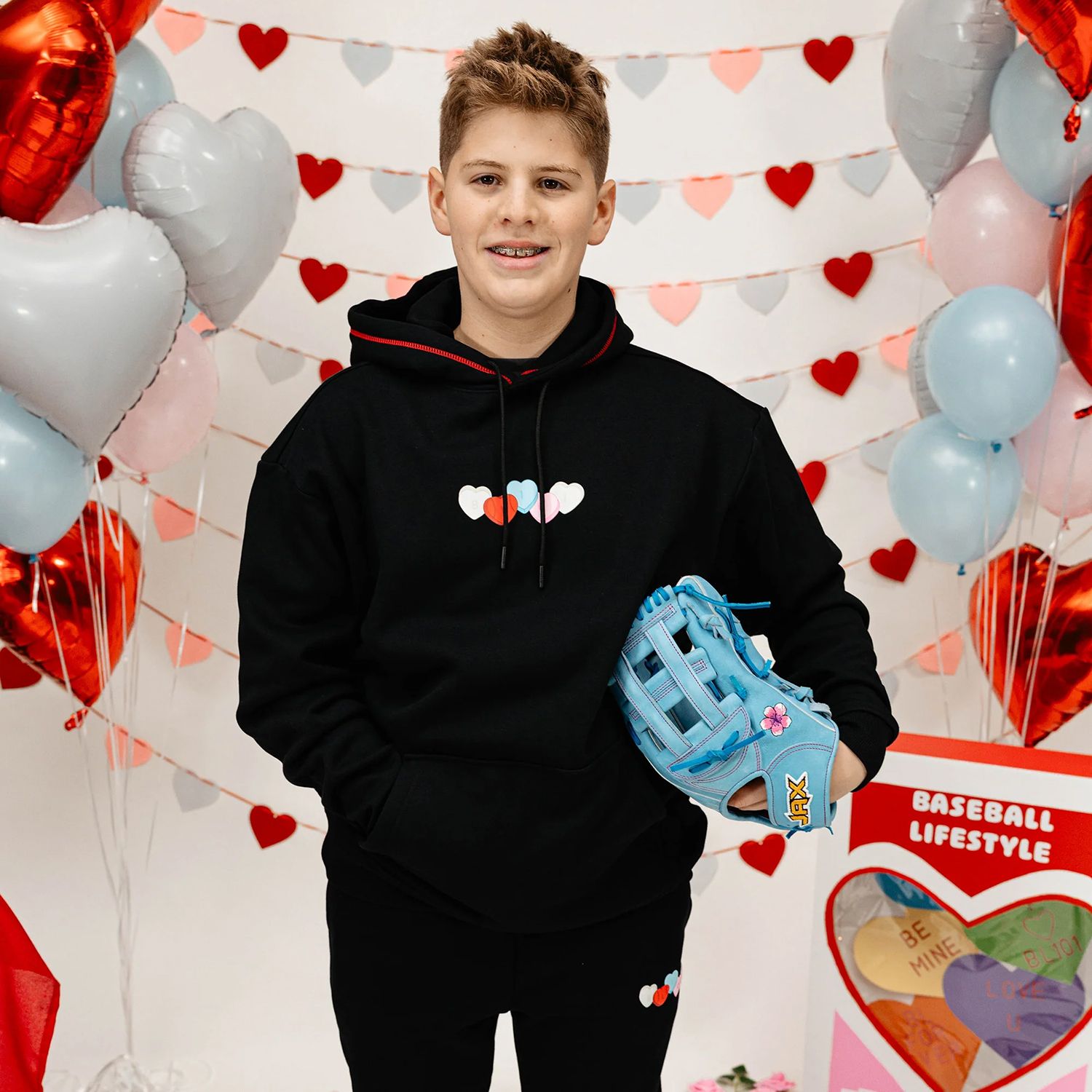 With hearts spelling out the message across the back and cozy warmth, this hoodie delivers Valentine's Day energy for every practice, travel day, and dugout hang.