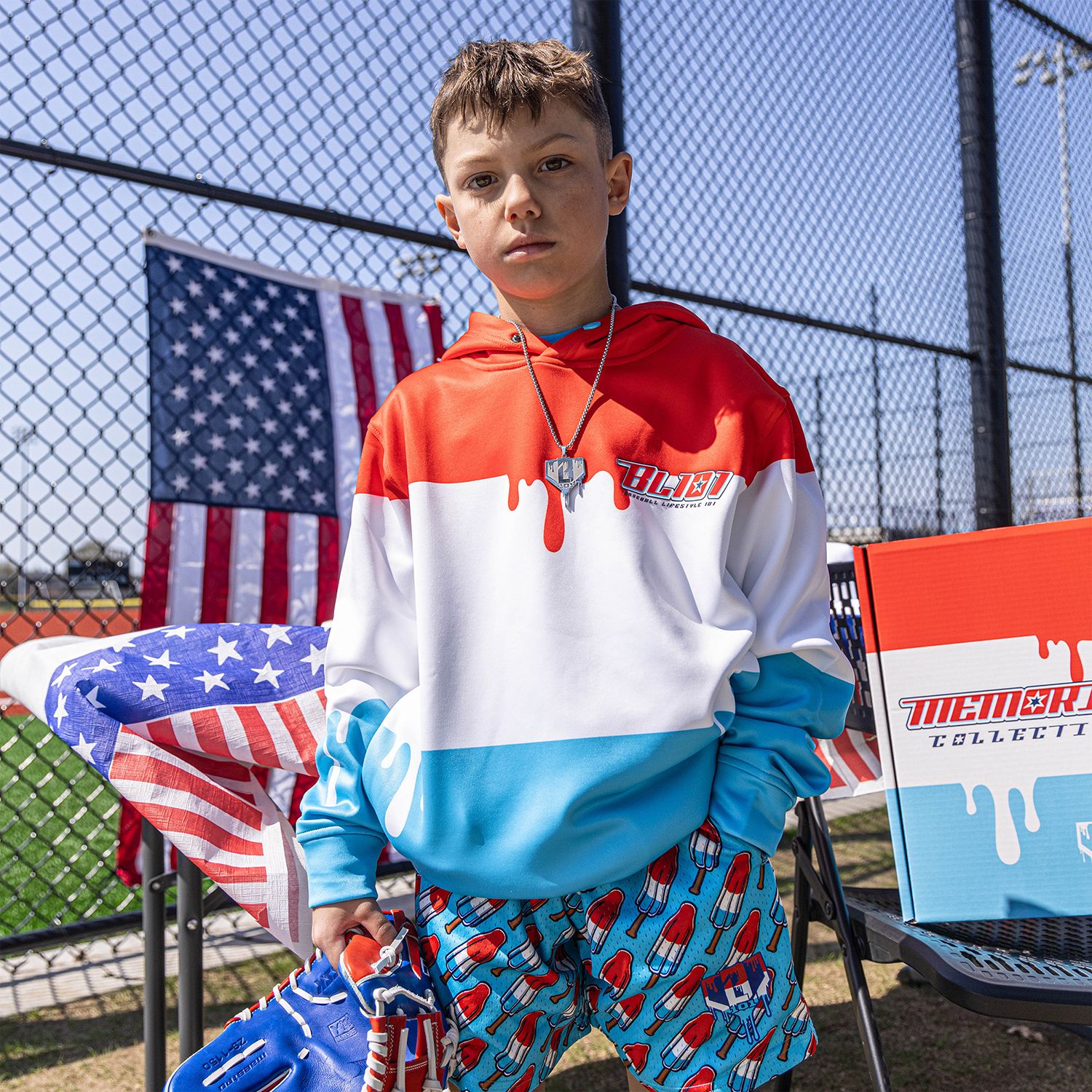 The Ice Cream Hoodie – Freeze Pop is a cold-weather clutch piece with red, white, and blue drip that’s made for Memorial Day and built for those chilly summer nights