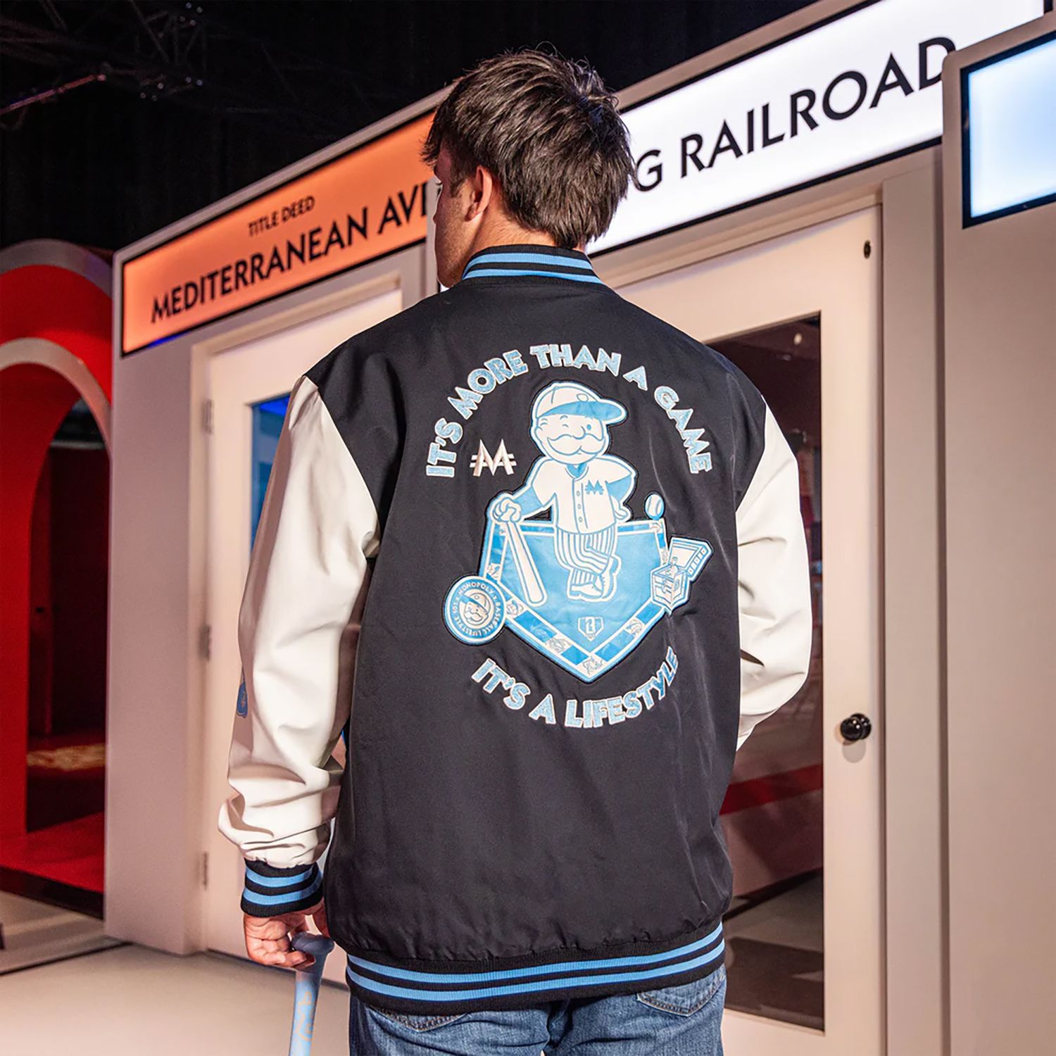 Whether you're stacking Ks or collecting properties, this varsity jacket is your statement piece.