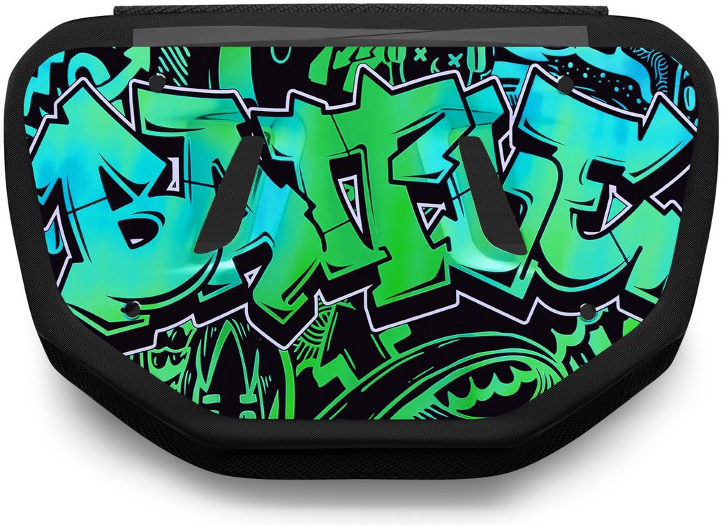 Big hit with youth football players. My 9 year old picked it out and it was easy to attach to pads. Held up great half way through the season now