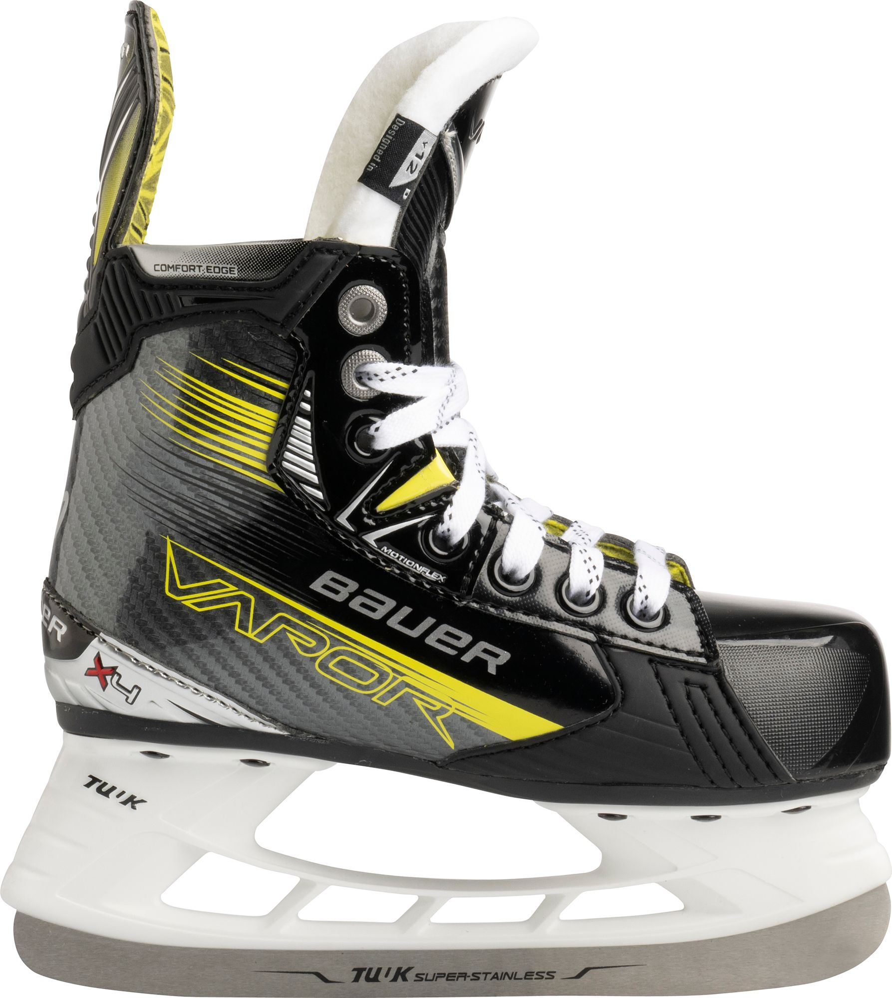 Balancing the scales between skate innovation, relative performance, and parent investment, the X4 skates offers MotionFlex Technology, a more appropriate flex profile for those still developing their skating stride.