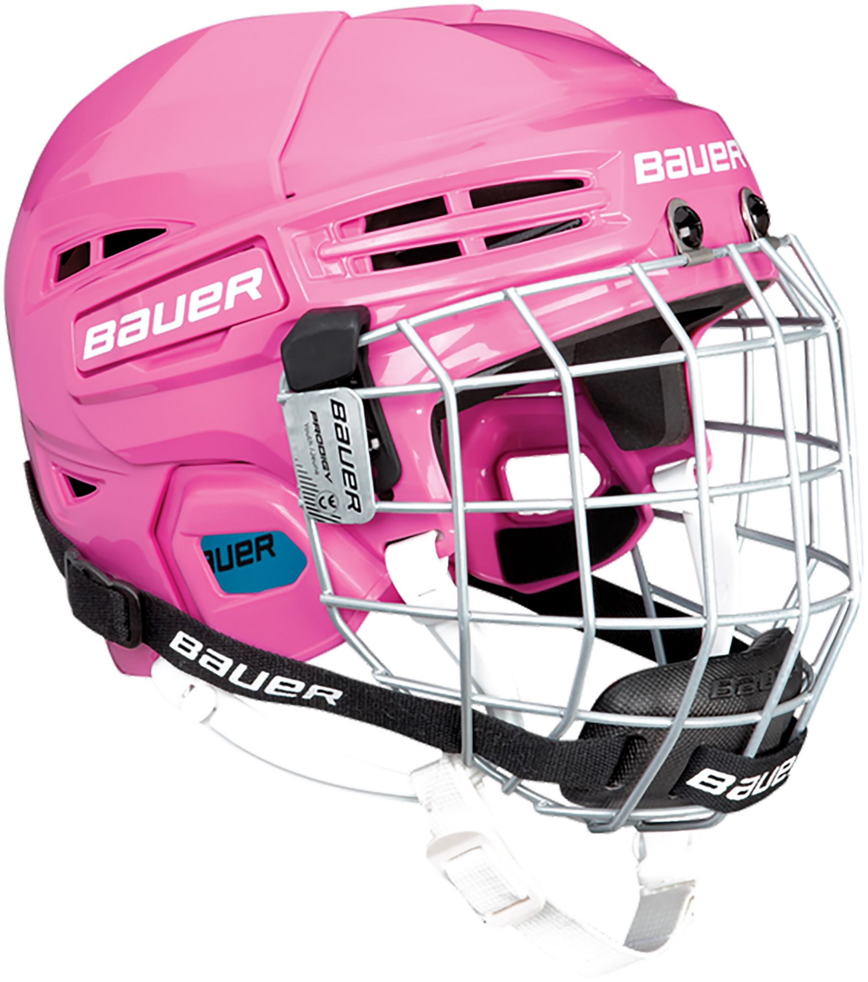 Give your little prodigy the protection his skilled and growing game needs with the Bauer® PRODIGY® Ice Hockey Helmet Combo. Made with dual-density foam and dual ridge crown, the Bauer® PRODIGY® helmet gives them the perfect amount of protection their game needs. Two-piece adjustment shell, tool-free adjustment allows for a convenient and easy fit and quick release PRODIGY® facemask snaps gets the facemask on and off easily.