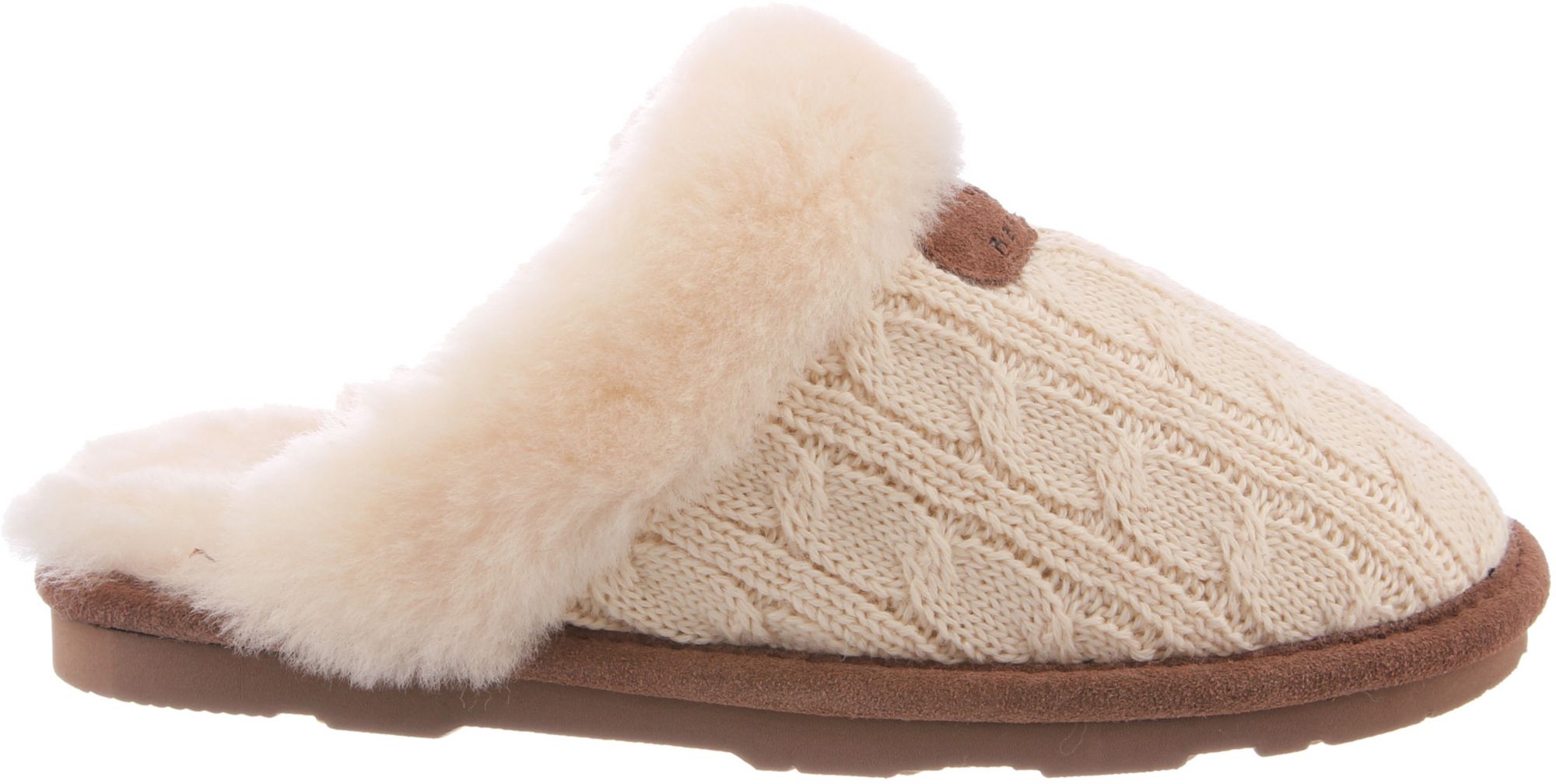Just like your favorite sweater, the BEARPAW® Women's Effie slippers offer a familiar, cozy feeling when temperatures dip. The Effie is made with soft and thick cable knit fabric and lined with sheepskin for plush, warm comfort. It's adorned with an embossed BEARPAW® logo and is finished off with a molded EVA outsole for underfoot protection that's perfect for indoor use and strong enough to let you run to the mailbox or let the dog out.