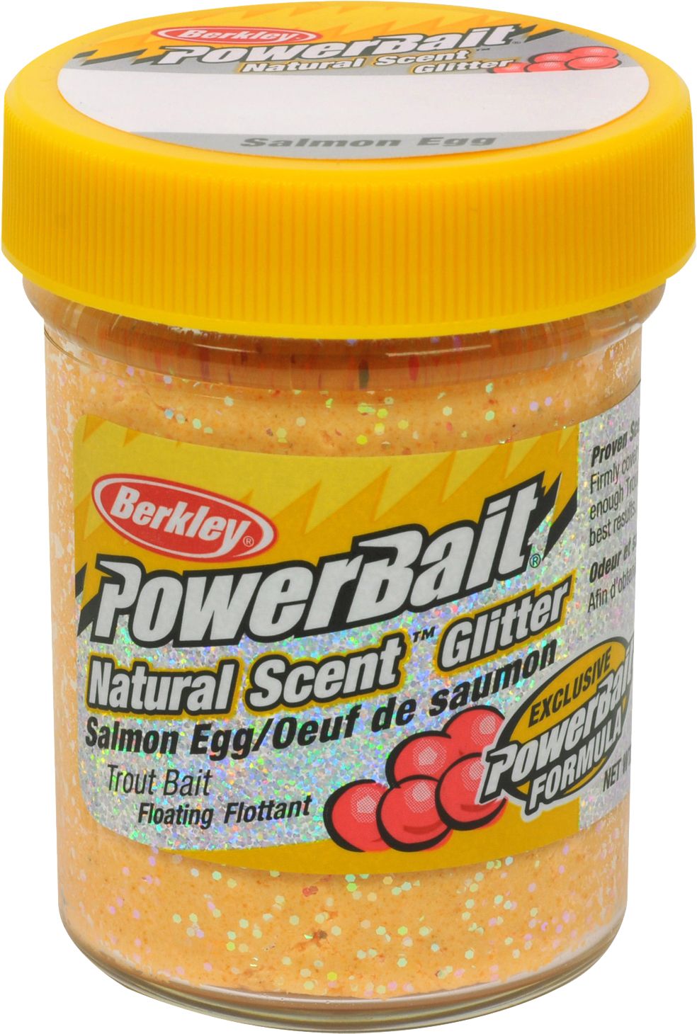 PowerBait Natural Scent Trout Dough Bait uses natural flavoring and fish-attracting flash to maximize your chances of a big catch. Loaded with crystalina glitter, this dough bait reflects light and adds flash to the water to draw fish in – even in murky water. Berkley® PowerBait® Natural Scent™ Glitter Trout Dough Bait uses its natural Salmon Egg flavor to trigger big strikes and keep fish at the end of your line.