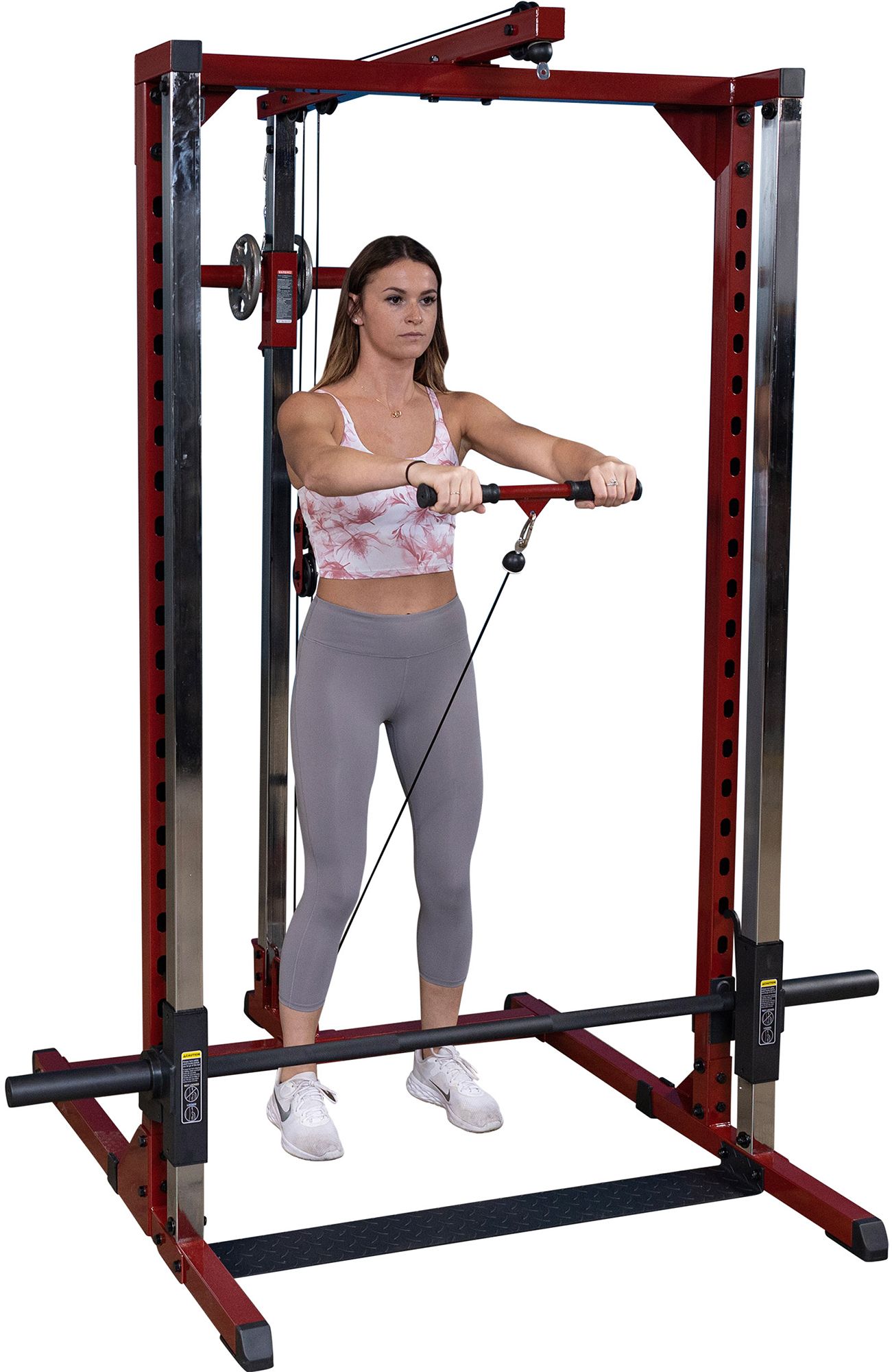 A solid steel, knurled Olympic barbell slides smoothly down the BFSM250’s carriage without resistance for safe and controlled movements. Use the 2" barbell sleeves to add up to 300 lbs. of additional weight to the barbell for intense workouts. Heavy-duty, adjustable safeties let users customize the Best Fitness Smith Machine for several of the most popular exercises, including bench presses, squats, shrugs, rows and more.