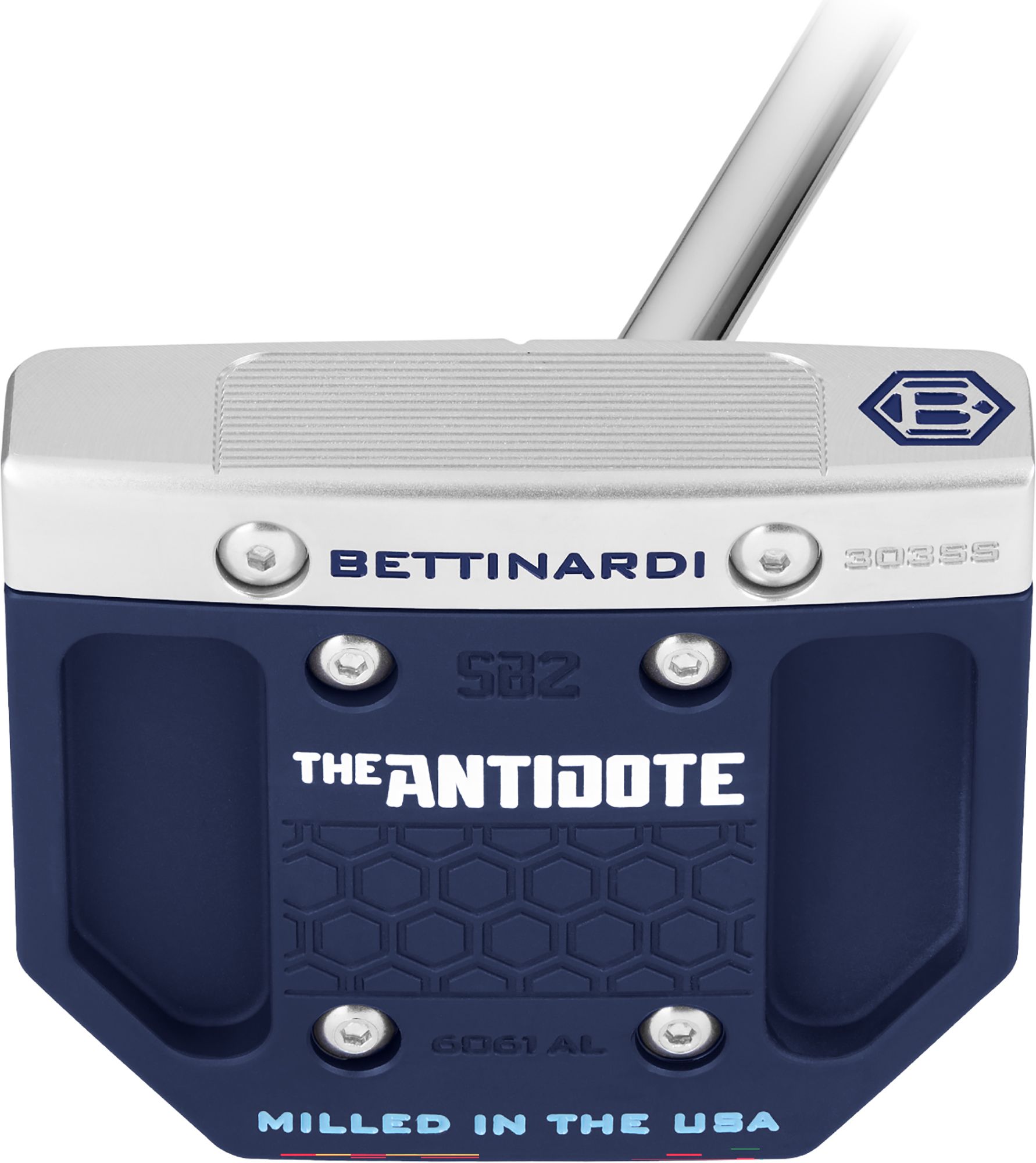 Introducing Bettinardi’s first generation of Simply Balanced™ zero-torque putters. Engineered for ultimate stability, these putters keep the face square throughout the stroke, regardless of swing path, giving you unmatched control and consistency on the green. Bettinardi's revolutionary Simply Balanced™ technology positions the shaft of the SB2 perfectly with the Center of Gravity, maintaining dynamic balance for a smooth and consistent stroke. The SB2 mallet is equipped with F.I.T.™ (Feel Impact Technology) face milling, delivering an exquisite softness and a responsive feel at impact. The topline and two flange lines on the insert enhance contrast and make alignment effortless. The SB2 features a Diamond Blast 303 Stainless Steel face and a Diamond Blast 6061 Aluminum anodized center insert, set within a striking precision-milled Sapphire Blue 6061 Aluminum body. Robert J. Bettinardi designed the Antidote SB2 using the same premium metal favored by Bettinardi Tour Staffers worldwide. Simplify your putting with the Simply Balanced™ SB2.