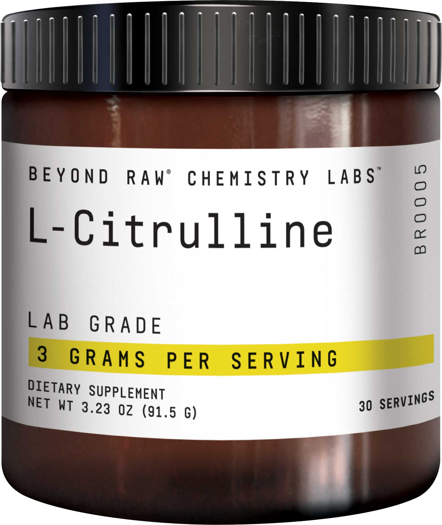 Add a little boost to your workout with the Beyond Raw® Chemistry Labs™ L-Citrulline 30 Servings. This lab-grade Citrulline is derived from an amino acid, working to recycle into arginine and boost nitric oxide production. It can be combined with your favorite pre-workout, arginine, or BCAA to ensure you are perfectly prepared to hit the gym.