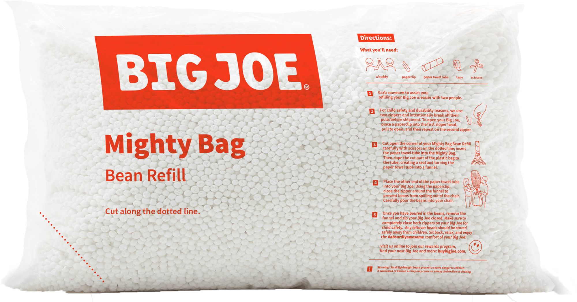 Detailed instructions can be found on the warning label attached to your Big Joe. And, you can use our fill packs for other reasons: packing material, arts and crafts, you name it!