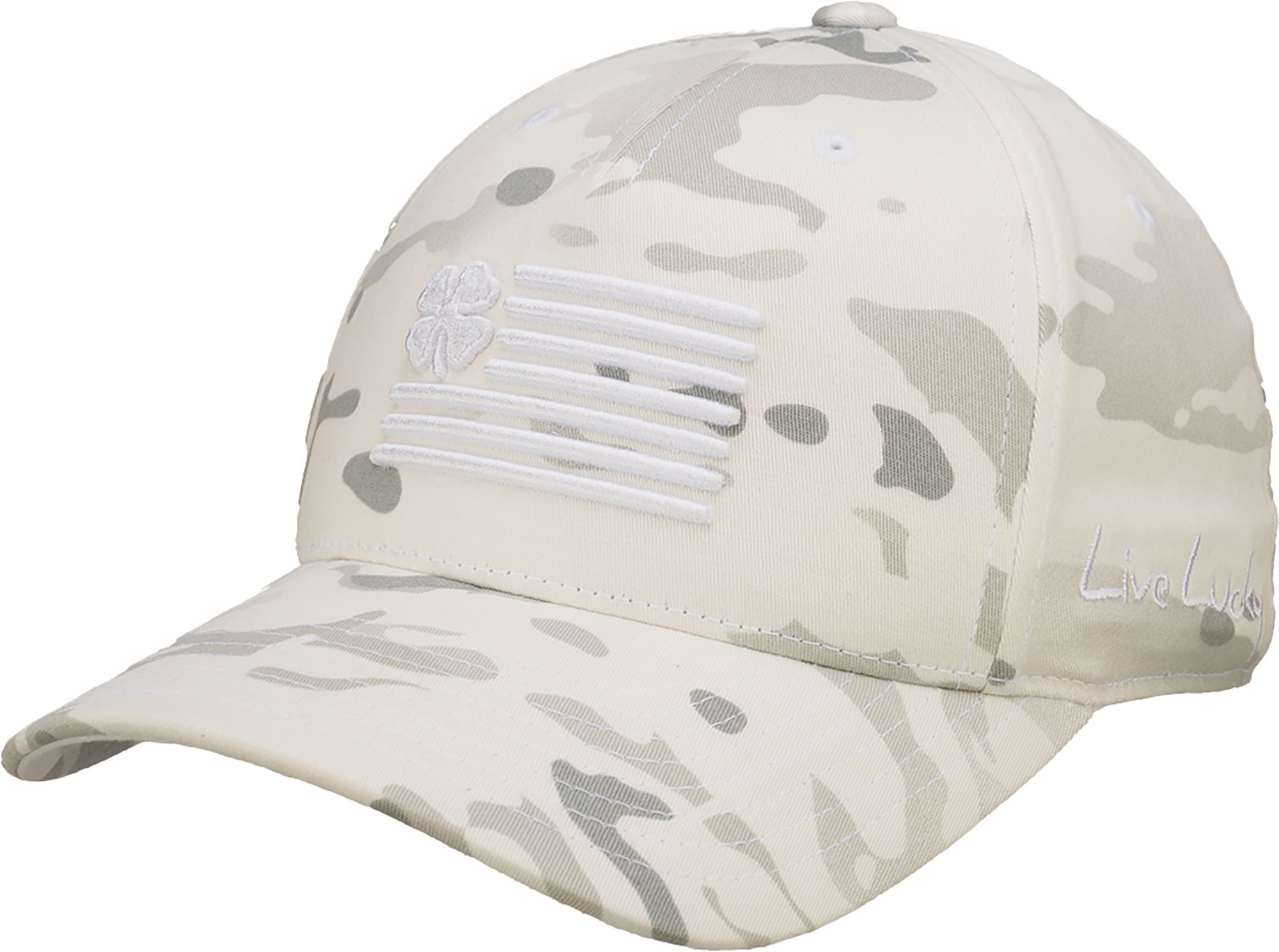 Complete your bold on course look with the Black Clover Men’s Clover Nation Golf Hat. This structured, low-profile hat features a pre-curved brim designed to maximize comfort in warm playing conditions. The Memory Fit headband wicks moisture away to keep you cool and dry, while embroidered eyelets on the crown maximize air circulation for cooling comfort. Contrasting embroideries on the front and side create head-turning style.