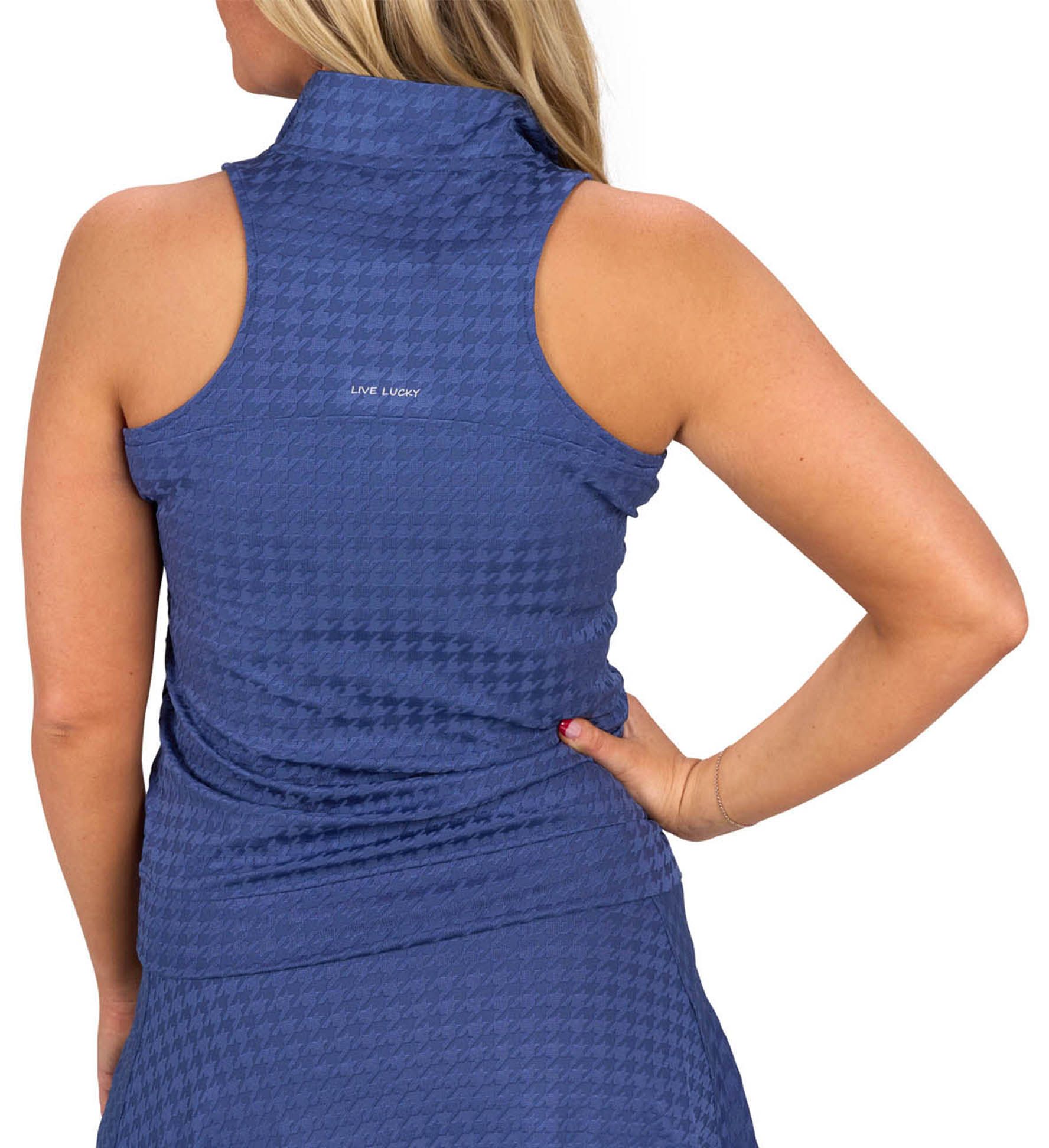 Elevate your game with our women's Lynx Sleeveless Polo, crafted from poly spandex jacquard stretch in a tonal herringbone. Stylish and flattering, it offers supreme comfort, breathability, and moisture-wicking performance. Perfect for pickleball, tennis, or golf, and pairs perfectly with our Lynx Skort.