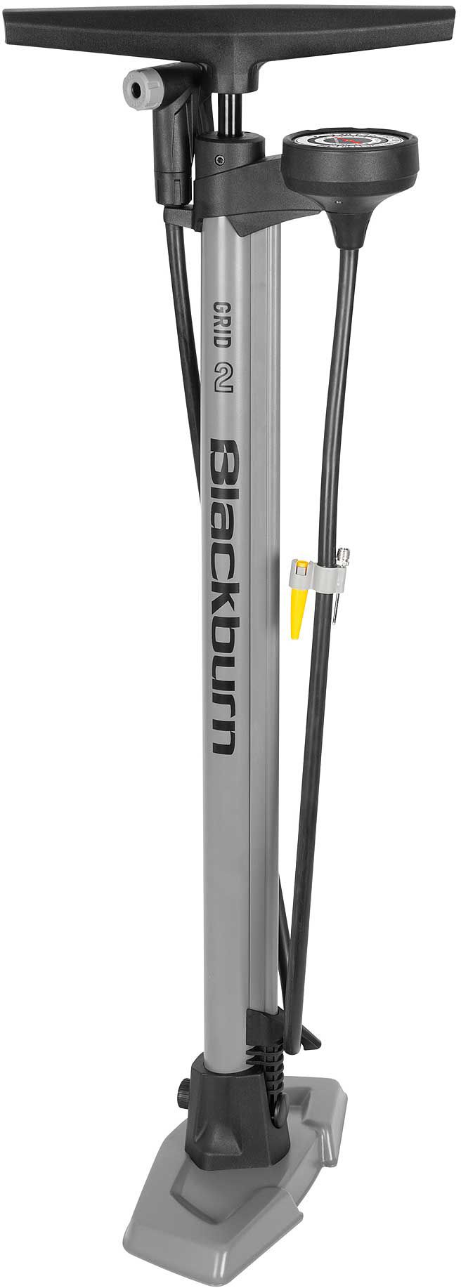 The Blackburn® Grid 2 Pump is your go to partner any time you need to inflate anything. The LocJaw head is compatible with Presta and Schrader tire valves and swaps between them with the flip of a lever. You can inflate with confidence knowing the Grid 2 is pressure rated 160 PSI (11 Bar), and the high contrast 2.5 inch tall gauge is easy to read at a glance.