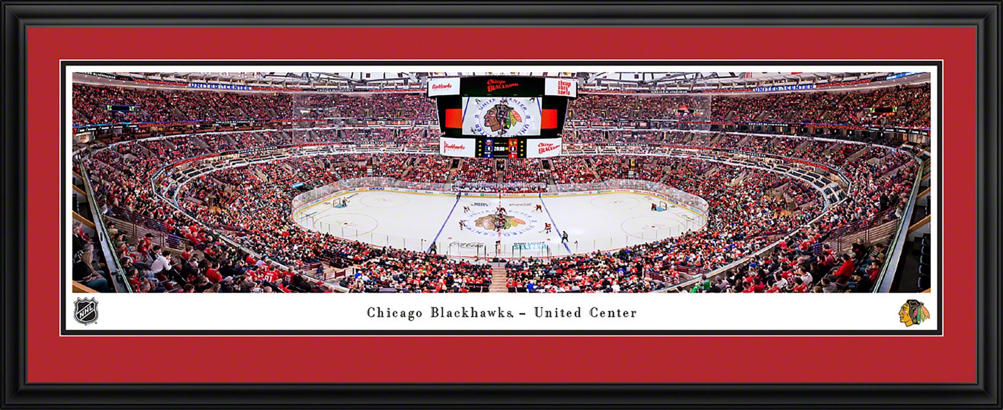 • Oversized, 44 inches wide x 18 inches tall deluxe frame, with double-mat in team colors