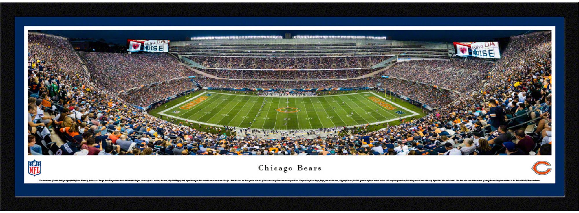 Add the perfect piece of team spirit to your home, office, or den with the high-resolution Blakeway Panoramas® Chicago Bears Framed Panorama Poster.