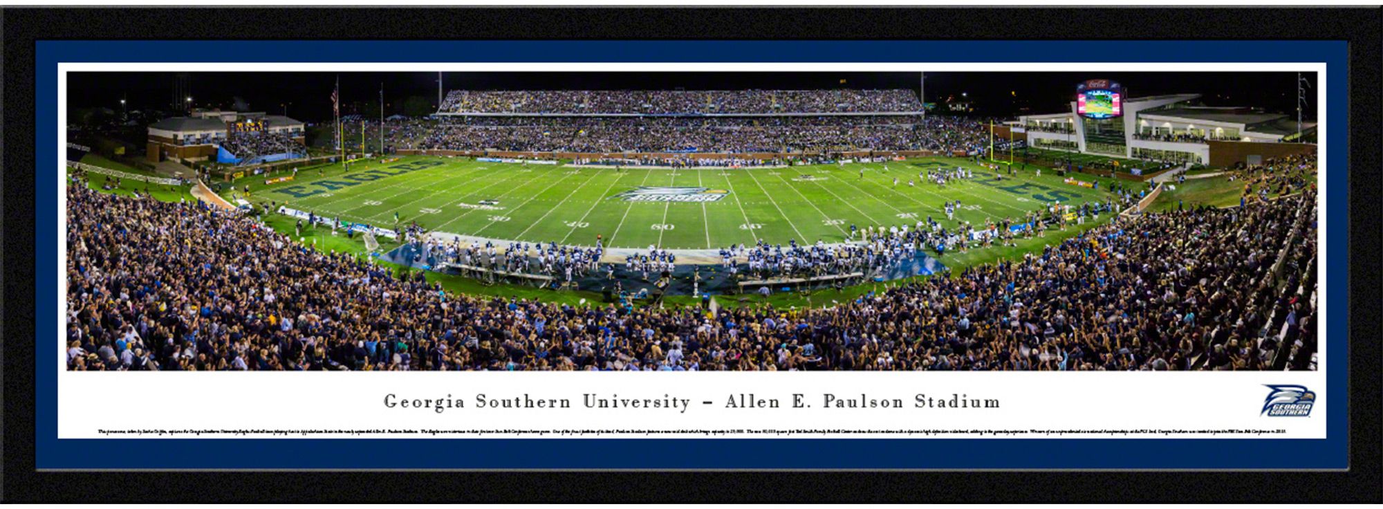 Add the perfect piece of team spirit to your home, office, or den with the high-resolution Blakeway Panoramas® Georgia Southern Eagles Framed Panorama Poster.