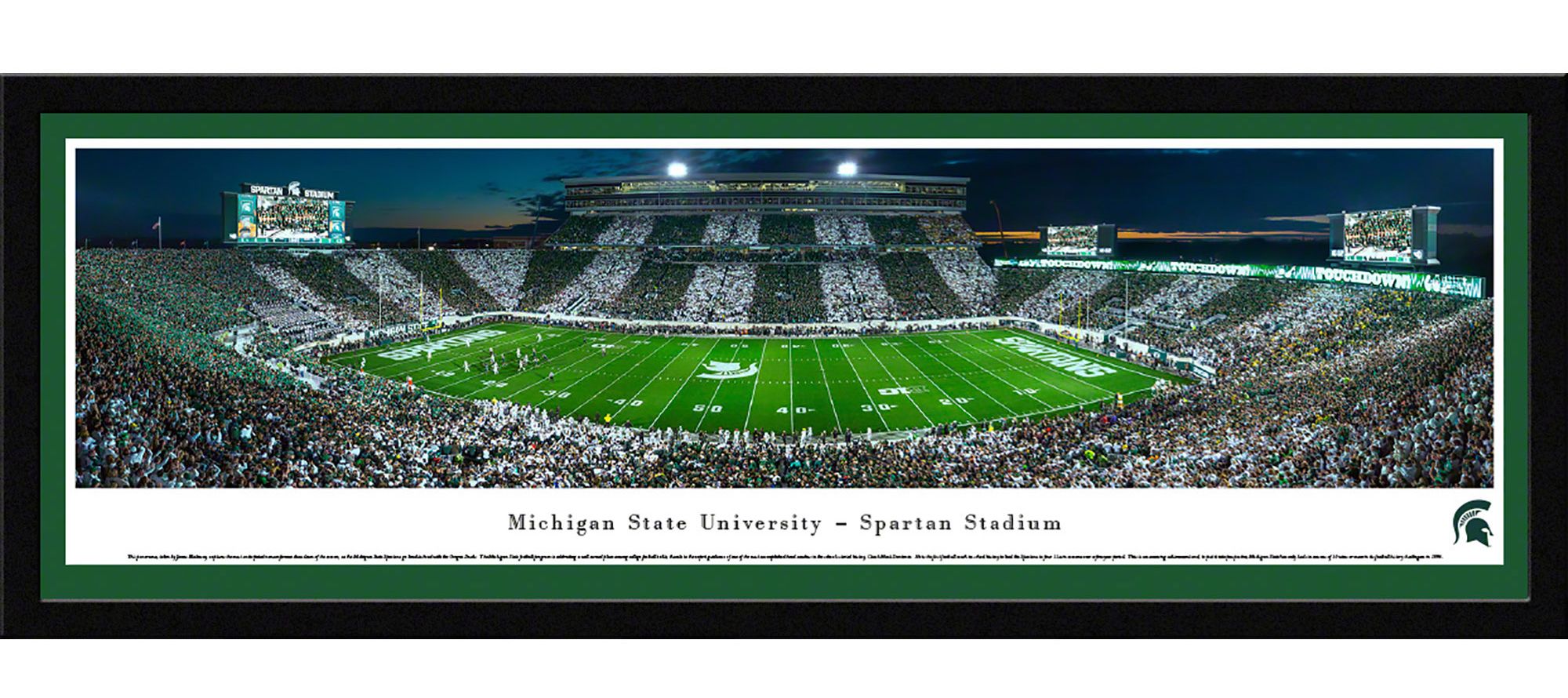 Add the perfect piece of team spirit to your home, office, or den with the high-resolution Blakeway Panoramas® Michigan State Spartans Framed Panorama Poster.