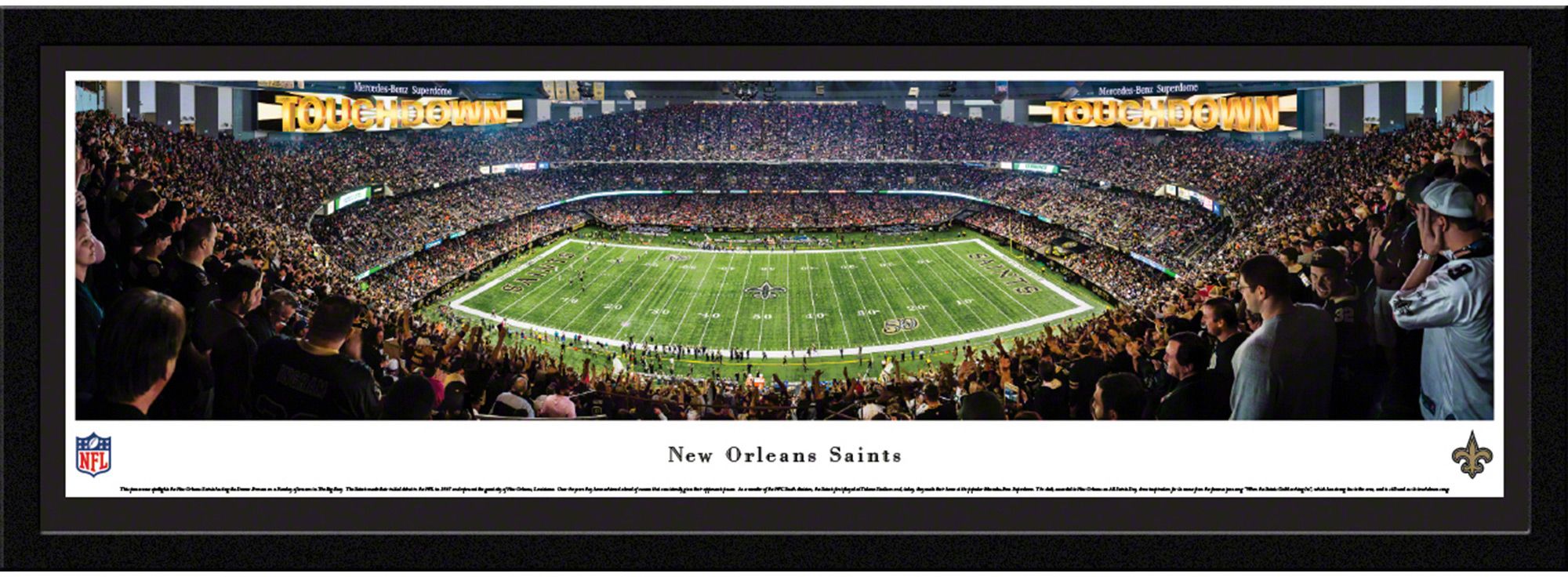 Add the perfect piece of team spirit to your home, office, or den with the high-resolution Blakeway Panoramas® New Orleans Saints Framed Panorama Poster.