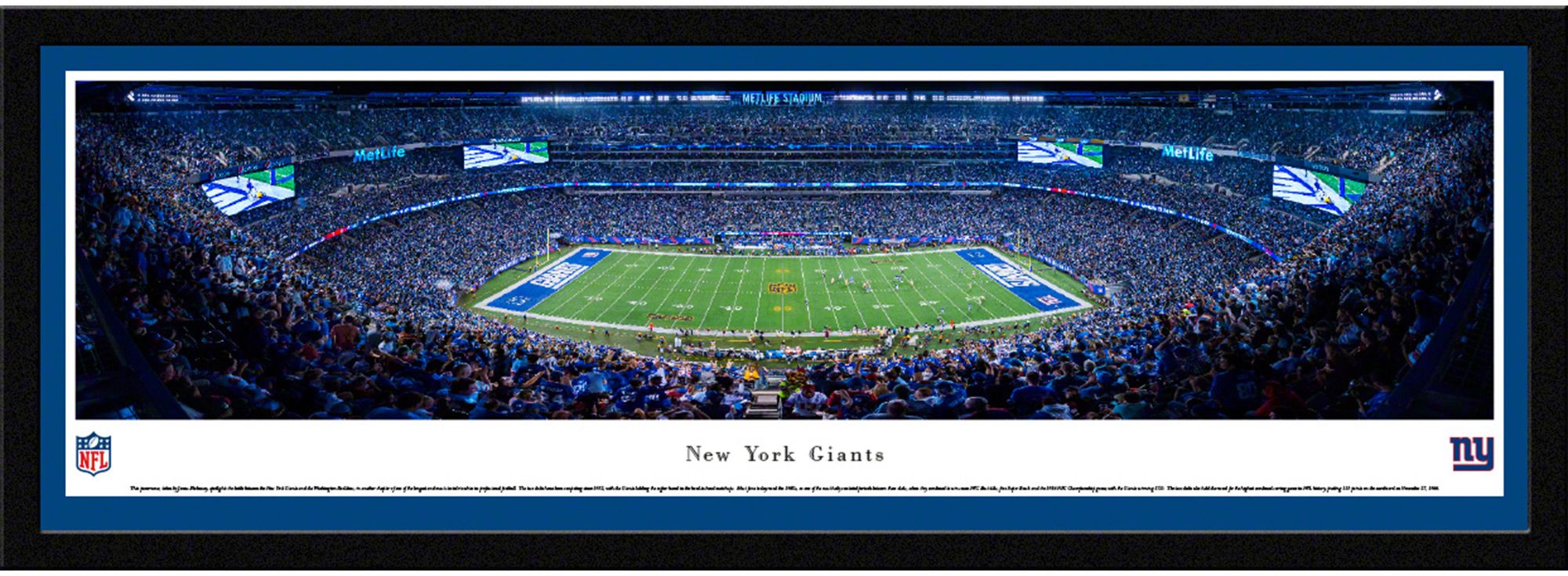 Add the perfect piece of team spirit to your home, office, or den with the high-resolution Blakeway Panoramas® New York Giants Framed Panorama Poster.