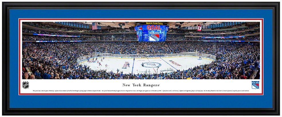 Add the perfect piece of team spirit to your home, office, or den with the high-resolution Blakeway Panoramas® New York Rangers Mat Deluxe Frame.