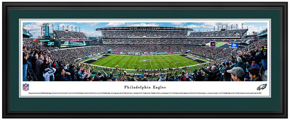Add the perfect piece of team spirit to your home, office, or den with the high-resolution Blakeway Panoramas® Philadelphia Eagles Mat Deluxe Frame.