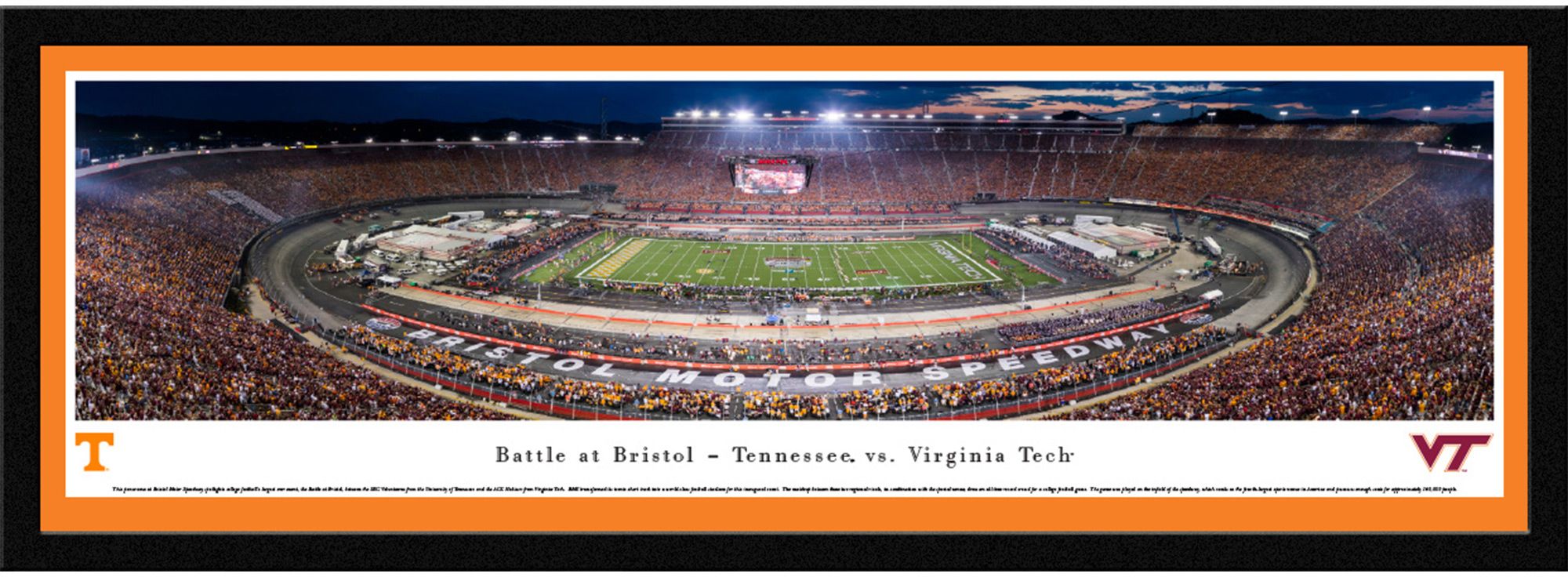 Add the perfect piece of team spirit to your home, office, or den with the high-resolution Blakeway Panoramas® Battle at Bristol Tennessee vs. Virginia Tech Framed Panorama Poster.
