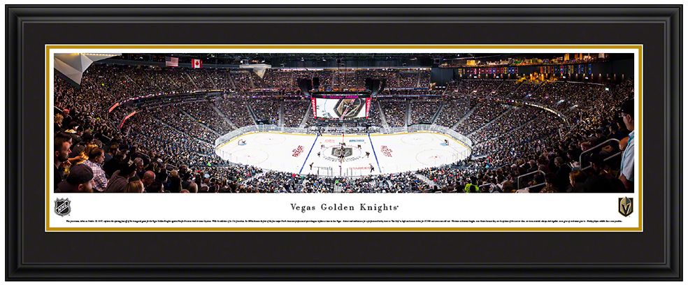 Add the perfect piece of team spirit to your home, office, or den with the high-resolution Blakeway Panoramas® Vegas Golden Knights Mat Deluxe Frame.