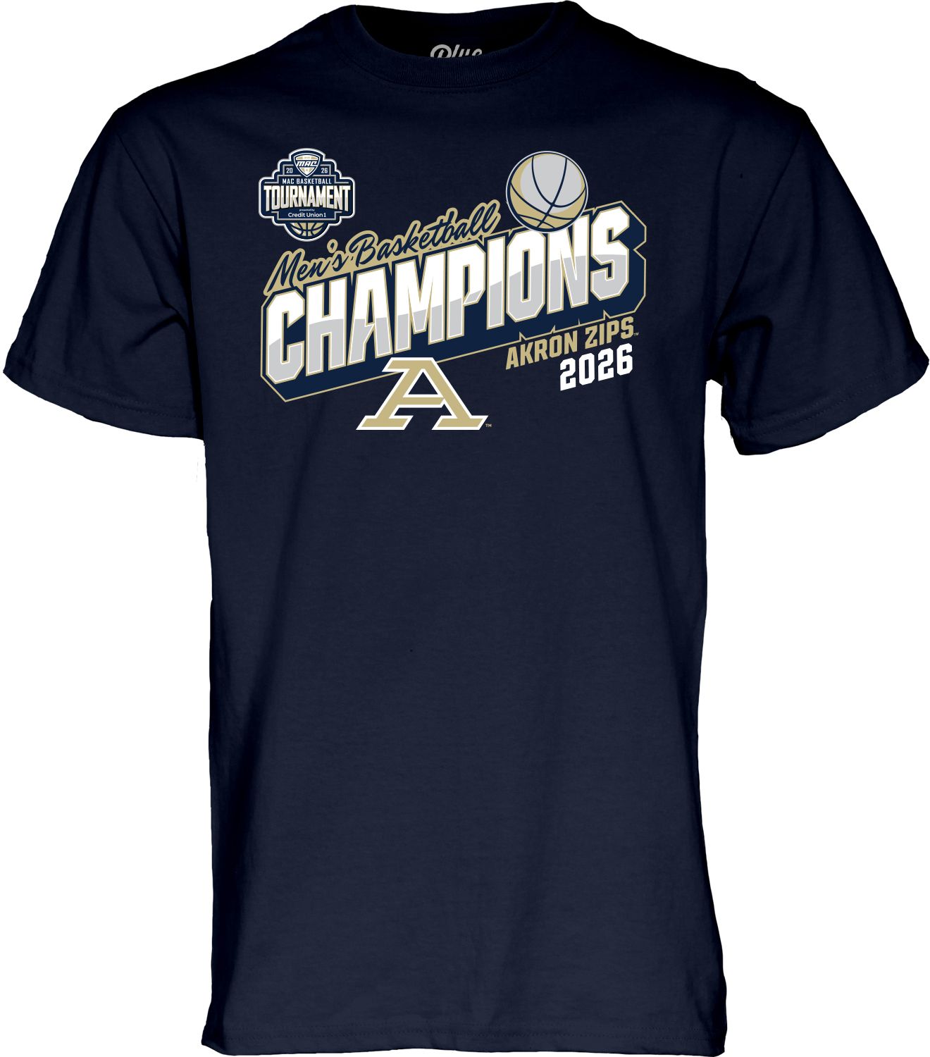 Blue 84 Adult 2026 Men's Basketball Mid-Atlantic Conference Champs Akron Zips Locker Room T-Shirt