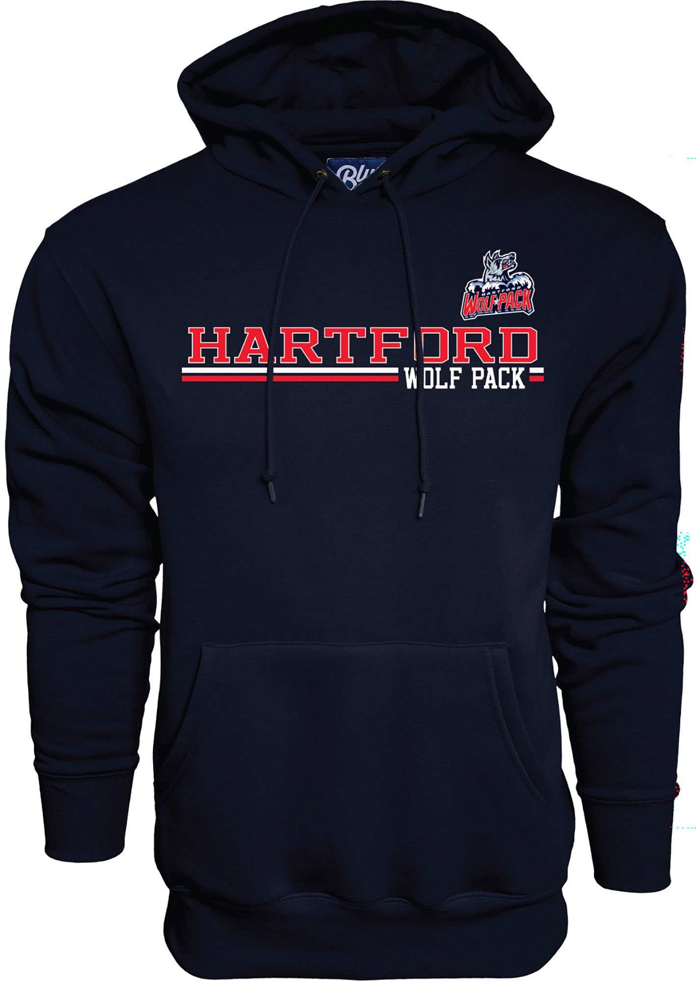 Blue 84 Adult Hartford Wolf Pack Navy Wordmark Logo Pullover Hoodie