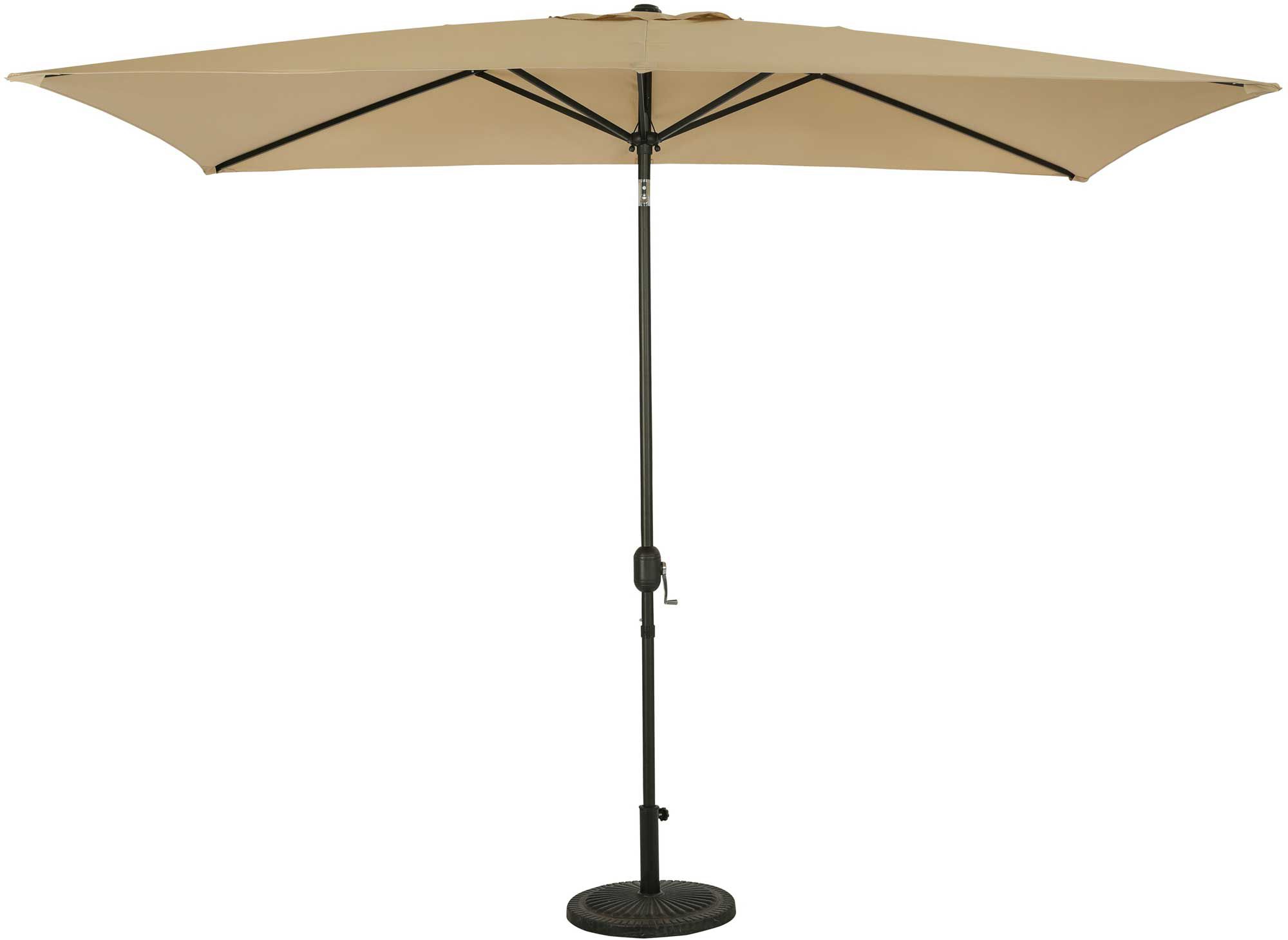 This is a perfect size for anybody with a succeeded patio table and chairs set up. The rectangular shape covers the entire dining area – way better than circular umbrellas. Note though, that some feel when the umbrella is not raised, its construction of some longer panels makes it appear like a “bat.”