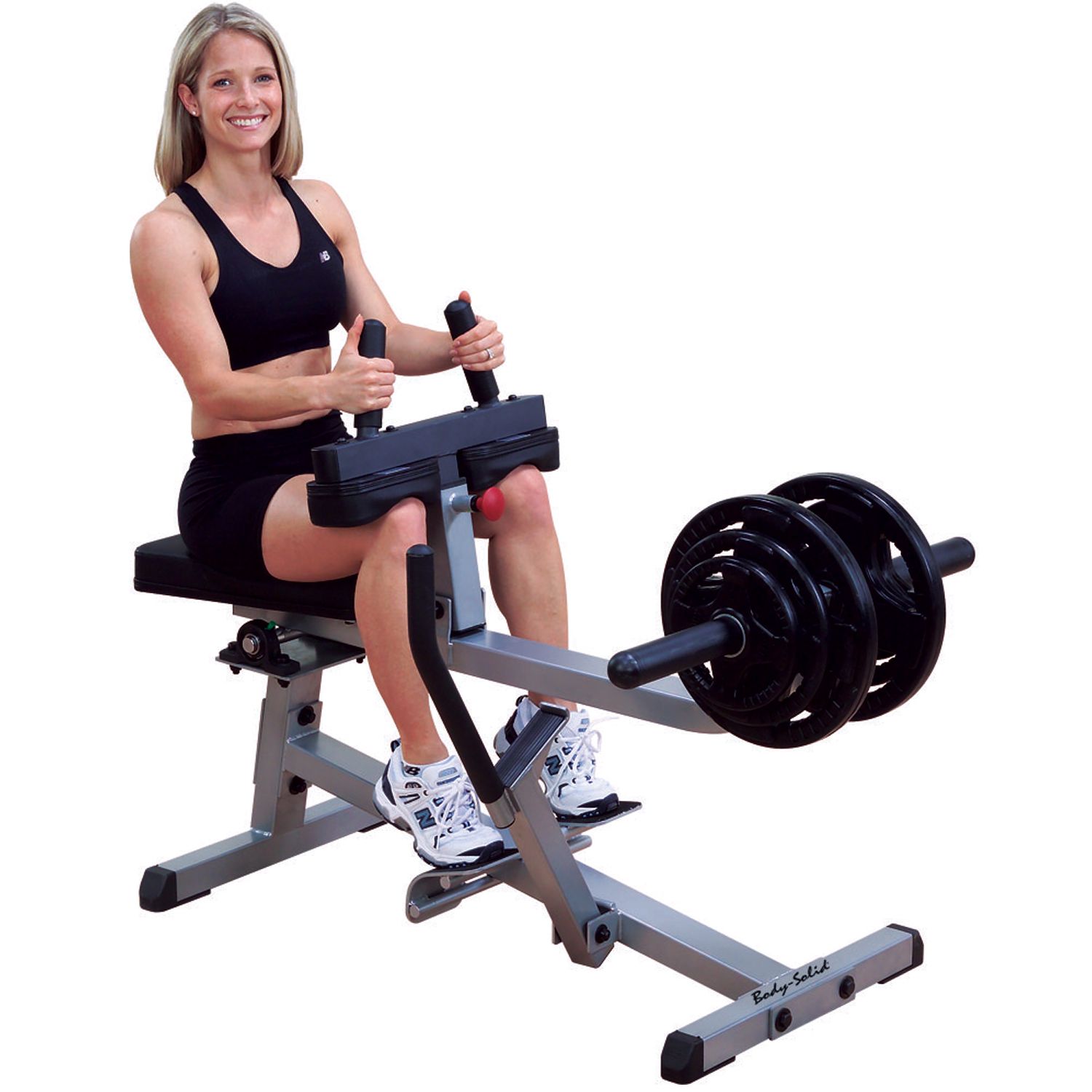 Isolate and strengthen your calves with the Body Solid ® GSCR349 2 x 3 Seated Calf Raise Machine. This machine is adjustable to any user and provides maximum range of motion for deep muscle fiber penetration. The no-slip foot platform assures you are isolating the muscles you want. Add bulk to your calves with the Body Solid ® GSCR349 2 x 3 Seated Calf Raise Machine.