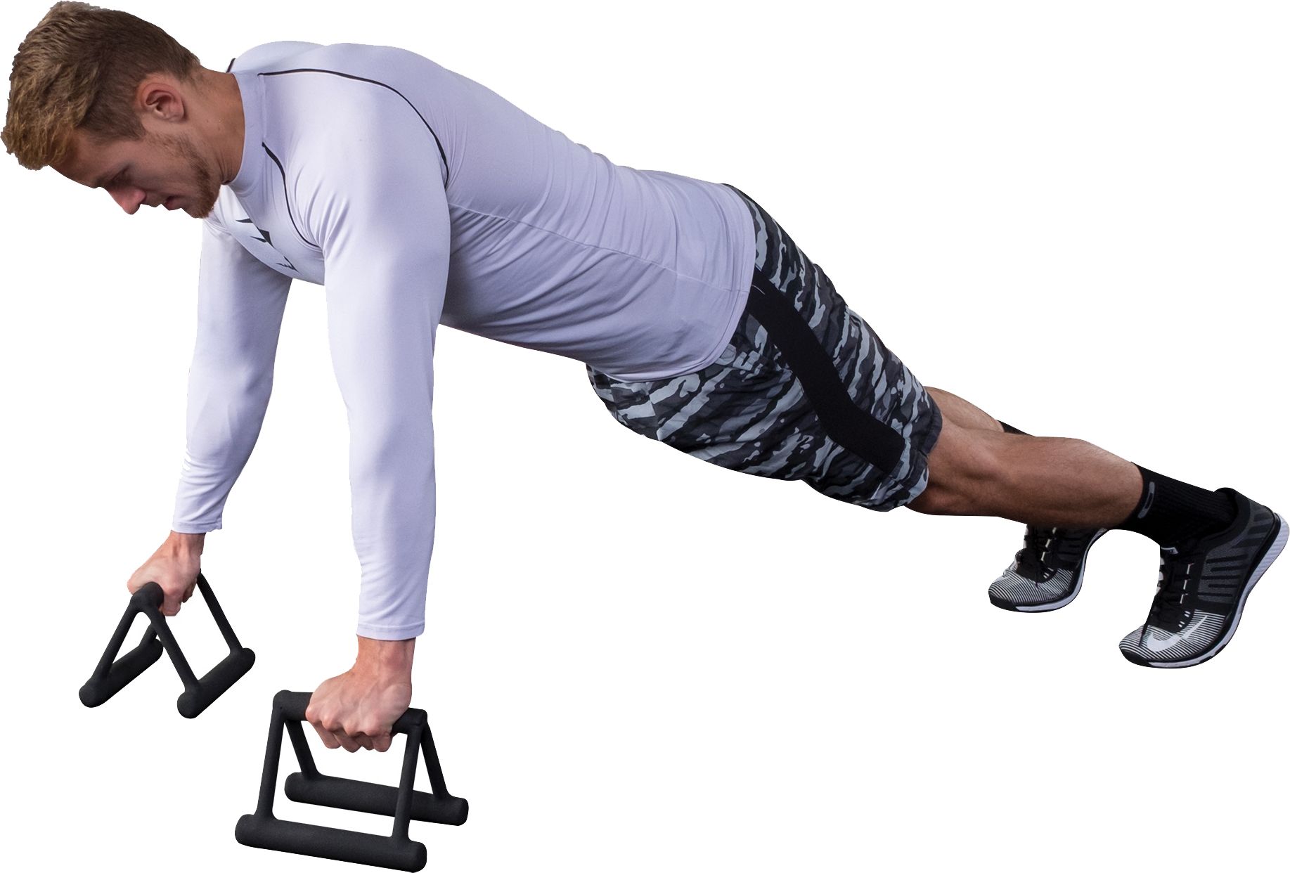 Greater range of motion and deeper stretch than a standard push-u