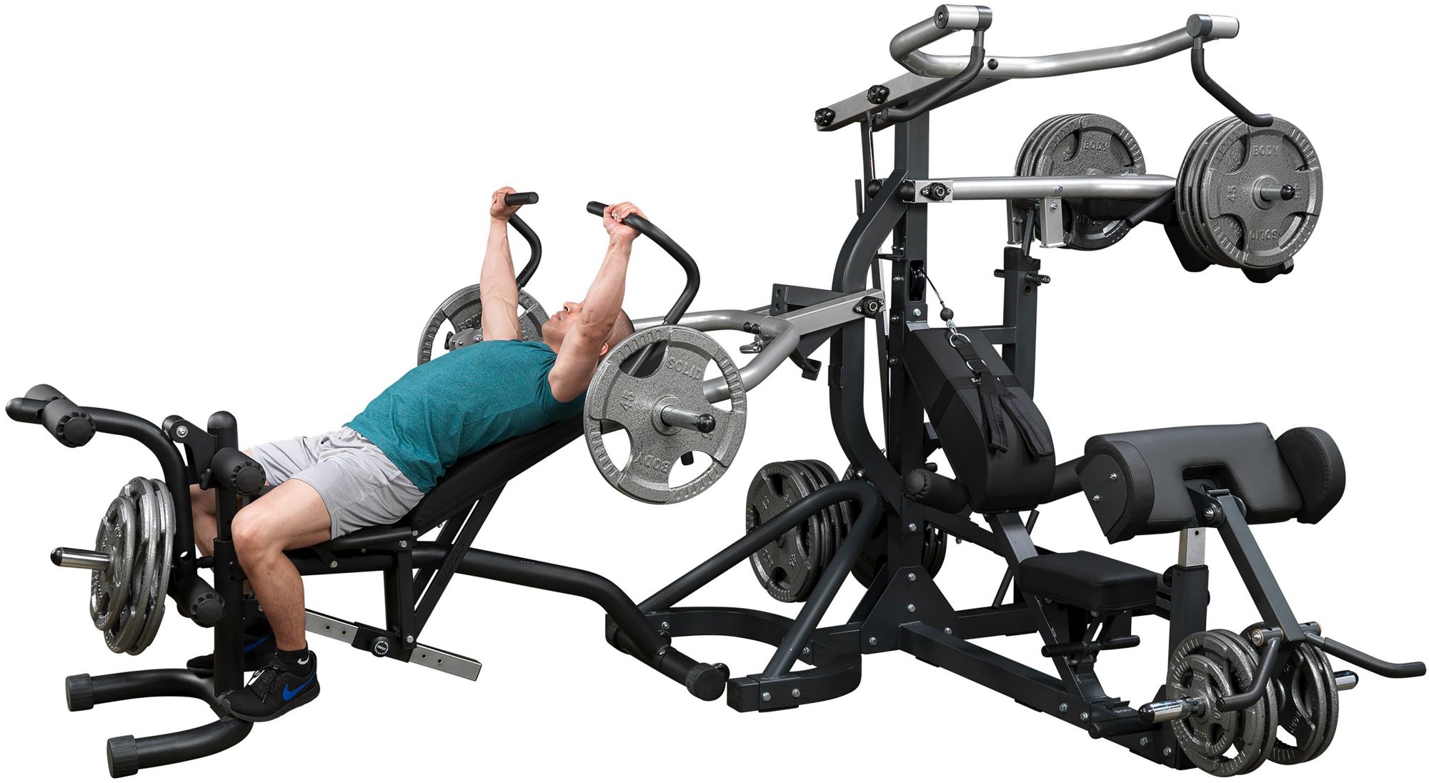 Crank up your workout intensity with the Body Solid® Leverage Gym Package. This gym has all the features of the standard Leverage Gym but also includes the LSA50 Squat Attachment and FID46 Bench. This home gym’s versatility and advanced safety features provide a complete workout without the need for a spotter. Perform exercises, including pec flys, preacher curls and much more.