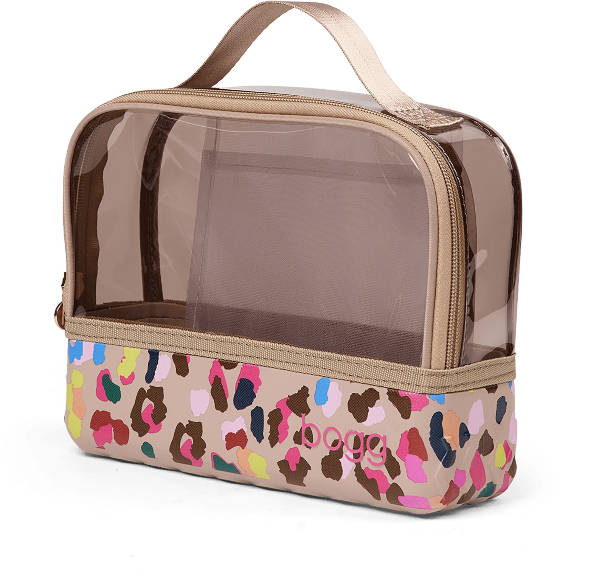 Everything you love about Bogg, now in a chic cosmetic case. Compatible with all three tote sizes, She's a Beauty! features a signature tread base for tip-proof stability on vanity tops, sink counters, and narrow shelving. Every detail of the design is carefully considered, from the transparent topper to the interior slip pocket to the U-shape zip that allows for wide, easy-open access. Finished with a top handle for grab-and-go ease, this compact case can also be used as a travel organizer or a wet bag to store bathing suits after a day at the beach.