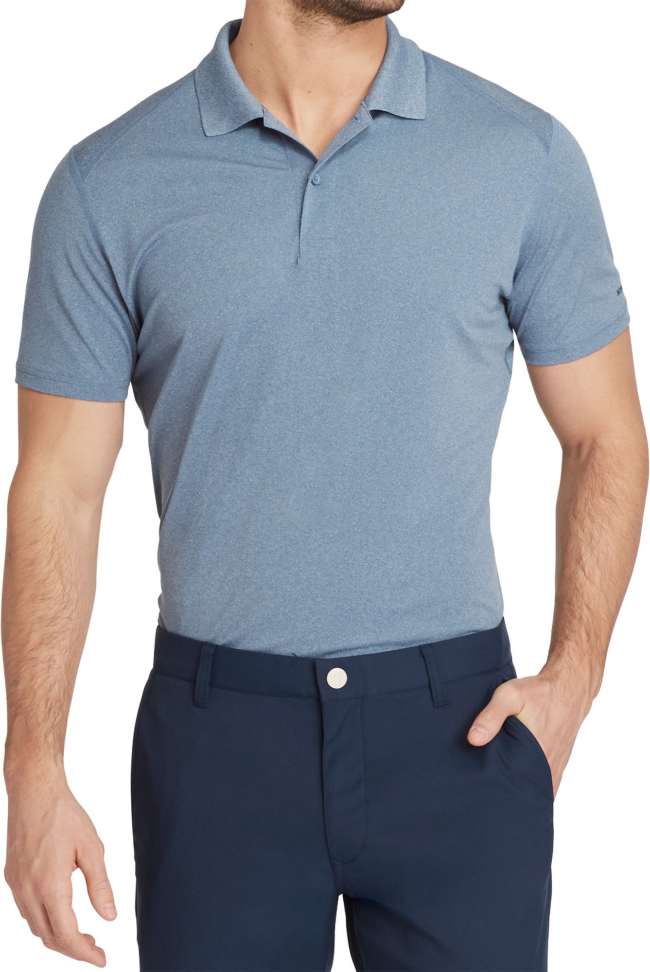Go for the short par 4 in the Bonobos® Men's Heather M-Flex Flatiron Golf Polo. Thanks to pieced-in M-Flex stretch panels, this polo gives you an increased range of motion during your swing. The ribbed collar and 3-button placket give you the classic golf look, while the short sleeves keep you cool and comfortable from tee to green.