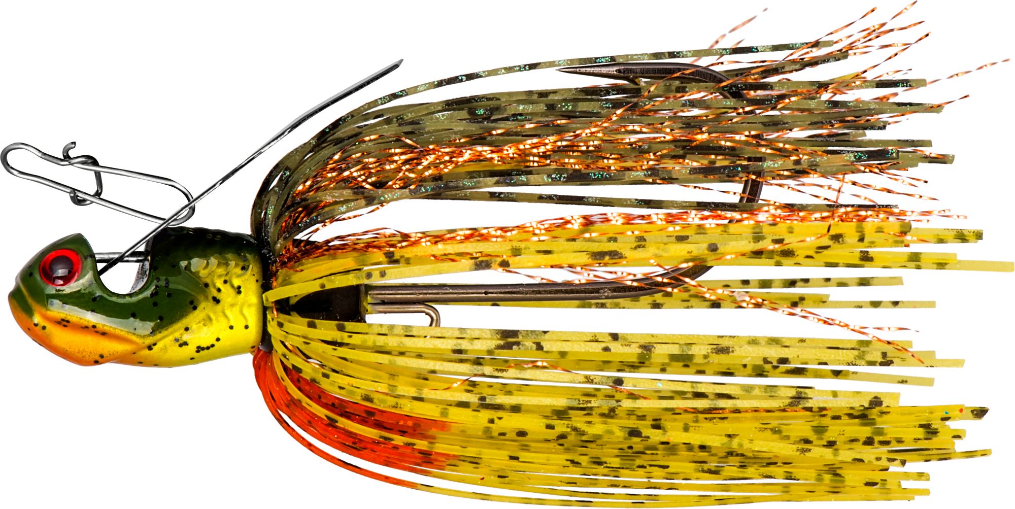 Easily deflecting off of cover, the Melee Bladed Jig has a uniquely-designed head that always strikes cover first, prompting the hook to move up and away. In addition, the super thin blade and polycarbonate head with inner lead core combine to create a distinct sound. The BOOYAH® Melee Bladed Jig is equipped with a high quality skirt and extra-long shank hook with wire plastic keeper.